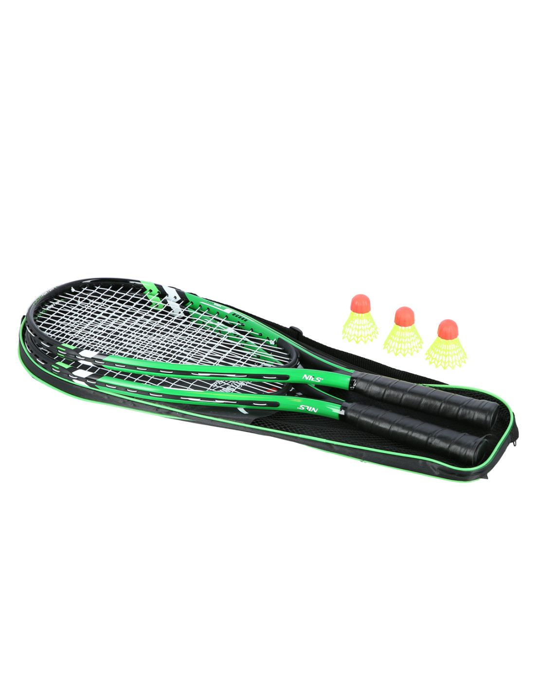 КРОСМИНТОН КОМПЛЕКТ 2 ХИЛКИ + КАПАНИ + ПРЕДПАЗЕН КАПАК ЗЕЛЕН NILS