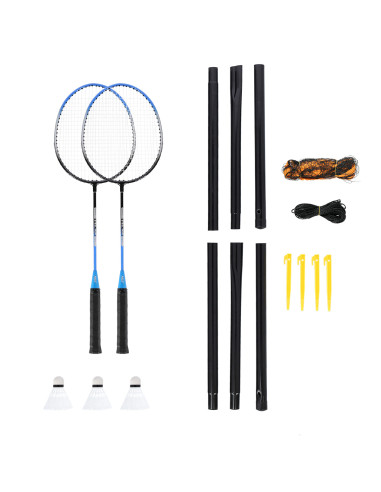 Комплектът включва две ракети, комплект от три найлонови волани, две телескопични щеки и найлонова мрежа. Това оборудване предоставя на потребителя всичко необходимо, за да започне тренировка. Освен това целият комплект е опакован в защитен калъф за лесно транспортиране.