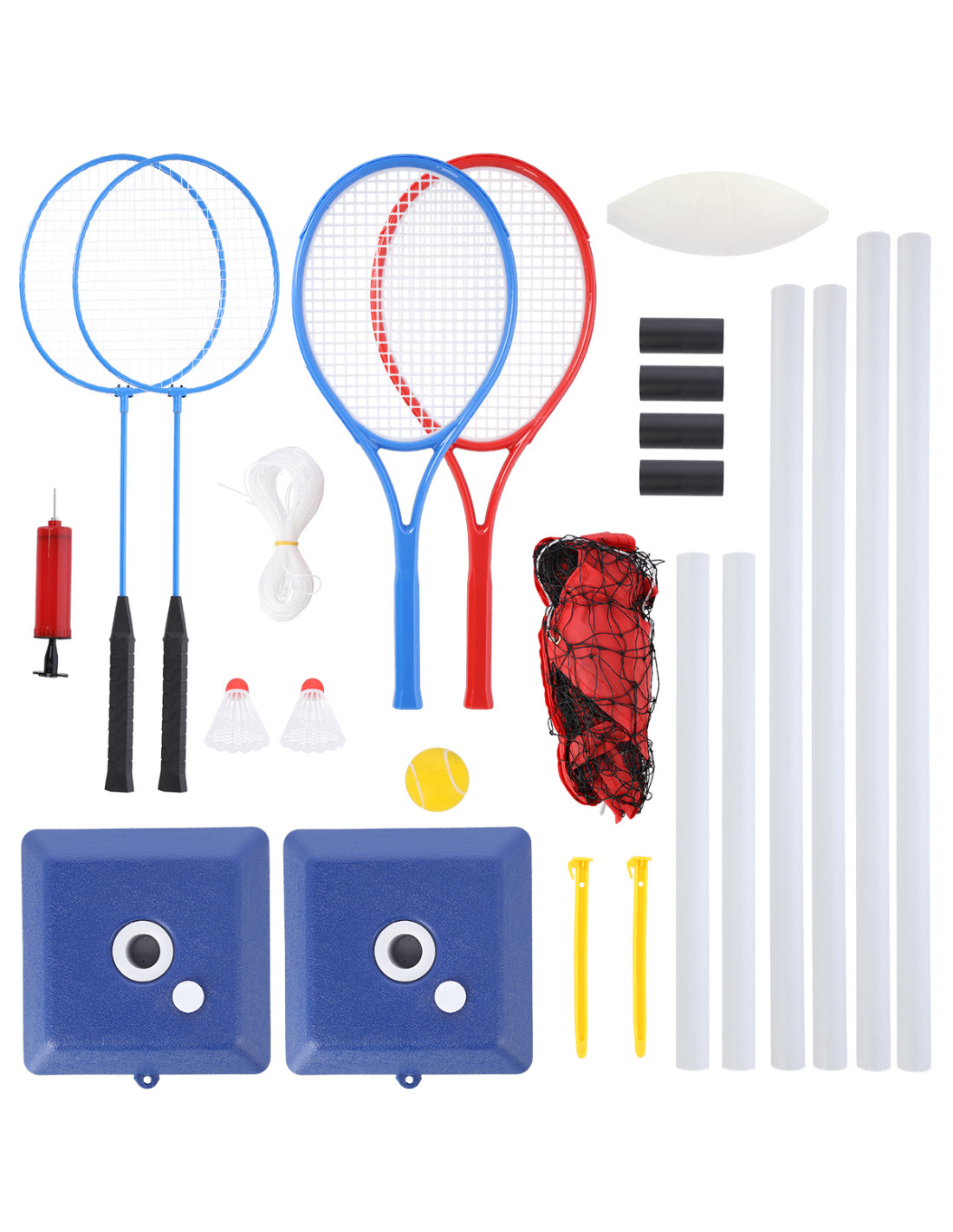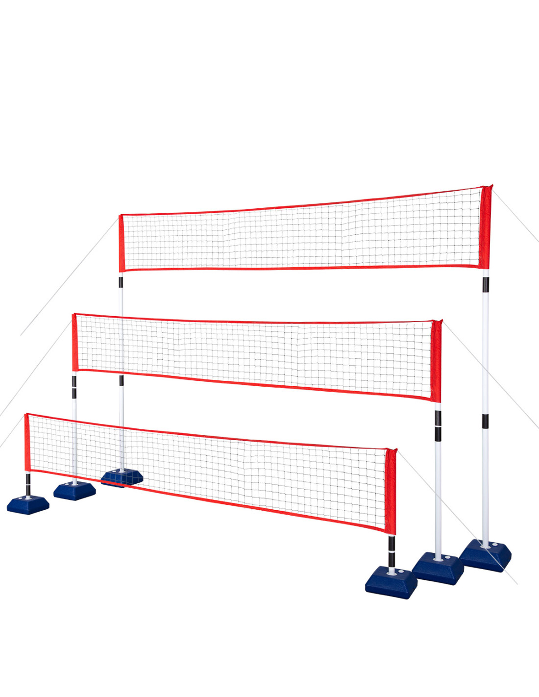 Мрежата, в най-ниската си височина (77 см), ви позволява да играете тенис. И тук марката NILS задоволява нуждите на потребителите, като предлага ракети и тенис топки. Следователно, когато изберете нашия продукт NT0300, получавате пълен комплект. Този комплект включва всичко необходимо за игра на волейбол, бадминтон и тенис.