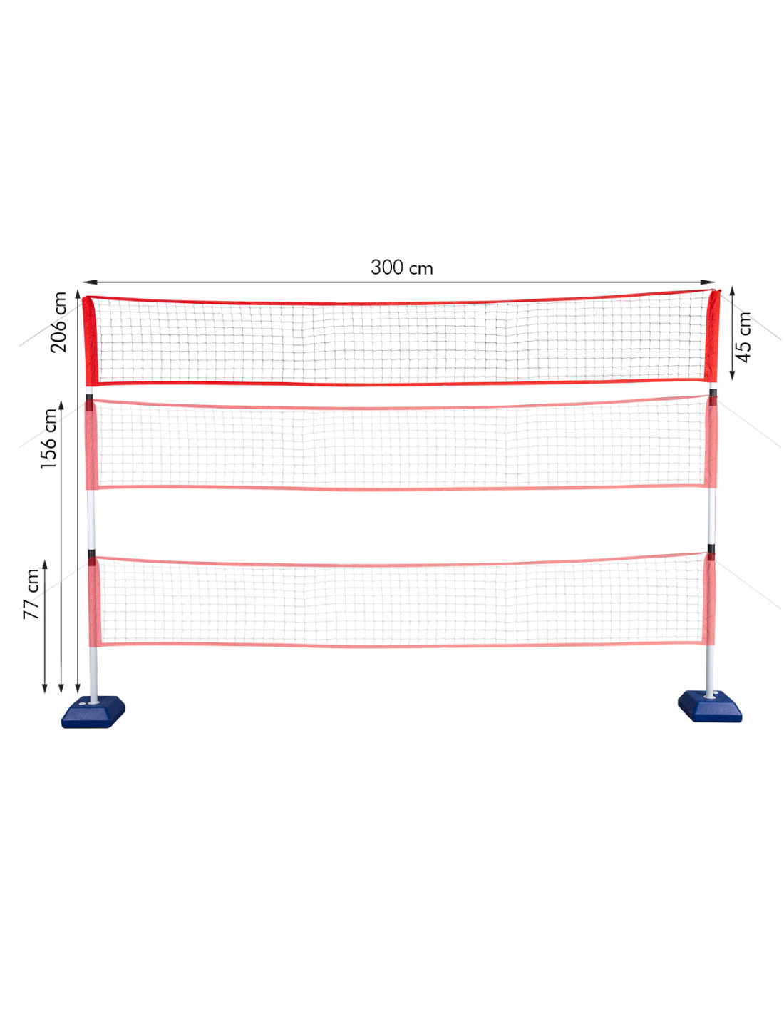 NT0300 NILS е мрежа 3 в 1. Регулирането на височината ви позволява да играете три различни вида игри.