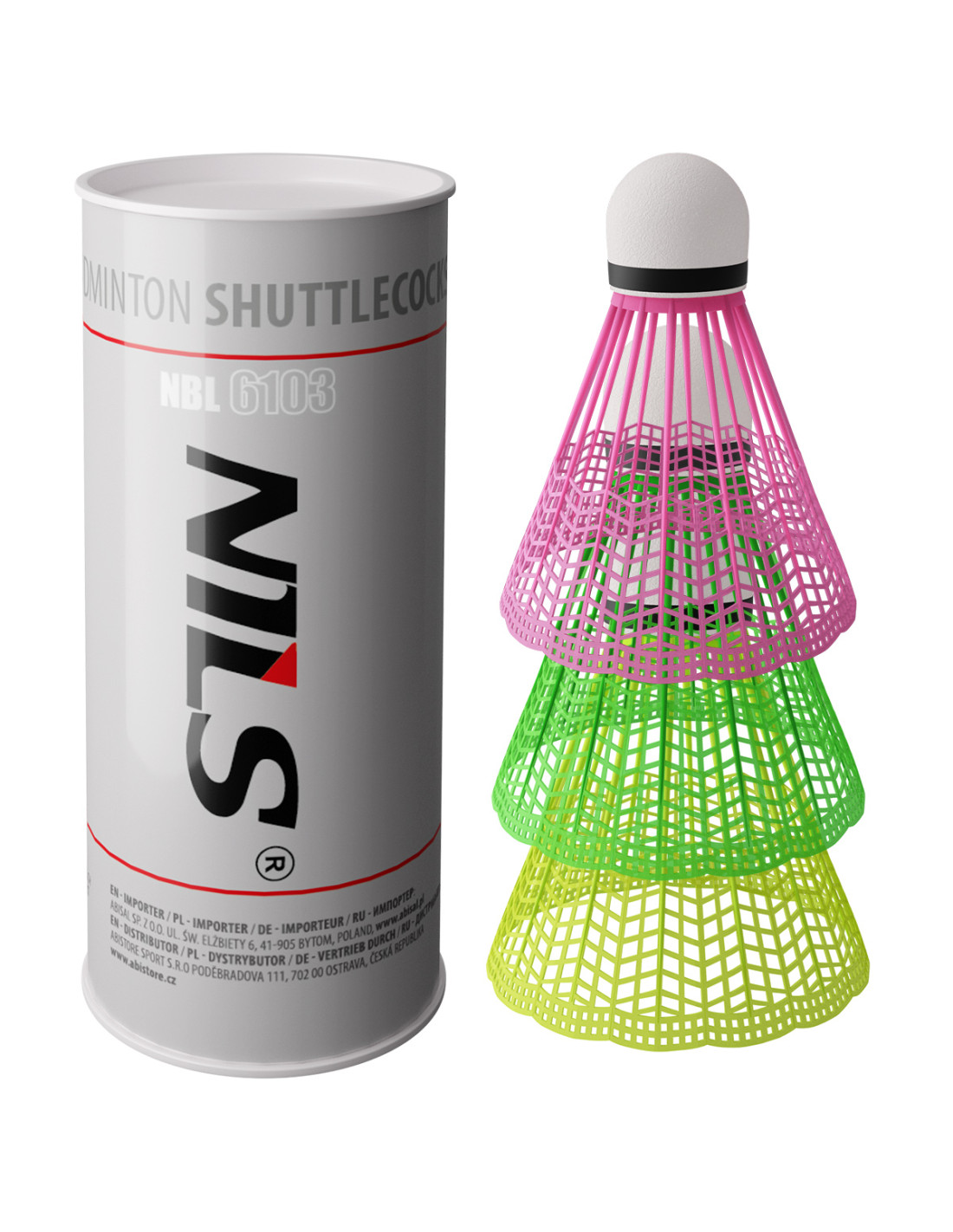 Синтетичните топки за бадминтон NBL6103 с глави са изработени от EVA. Главата от синтетичен найлон пряко влияе върху високата издръжливост на топката за бадминтон и гарантира нейната дълготрайност в сравнение с волана от пера. Използването на EVA за главата на топката за бадминтон осигурява перфектен баланс и контрол върху траекторията. Моделът NBL6103 е предназначен за игра както на открито, така и на закрито. Комплектът включва три топки за бадминто, всяка в различен цвят.