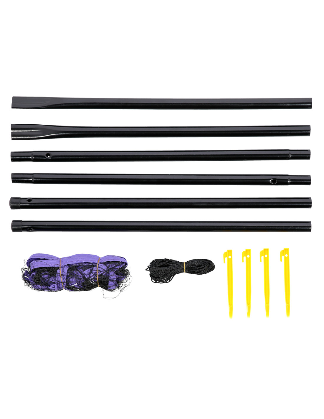 По време на монтажа стълбовете се вкарват в земята, за да образуват рамка, към която може да се закрепи мрежата. И мрежата, и рамката са устойчиви на атмосферни влияния. Мрежата е с дължина над 6 метра, което позволява да се играят две игри едновременно.