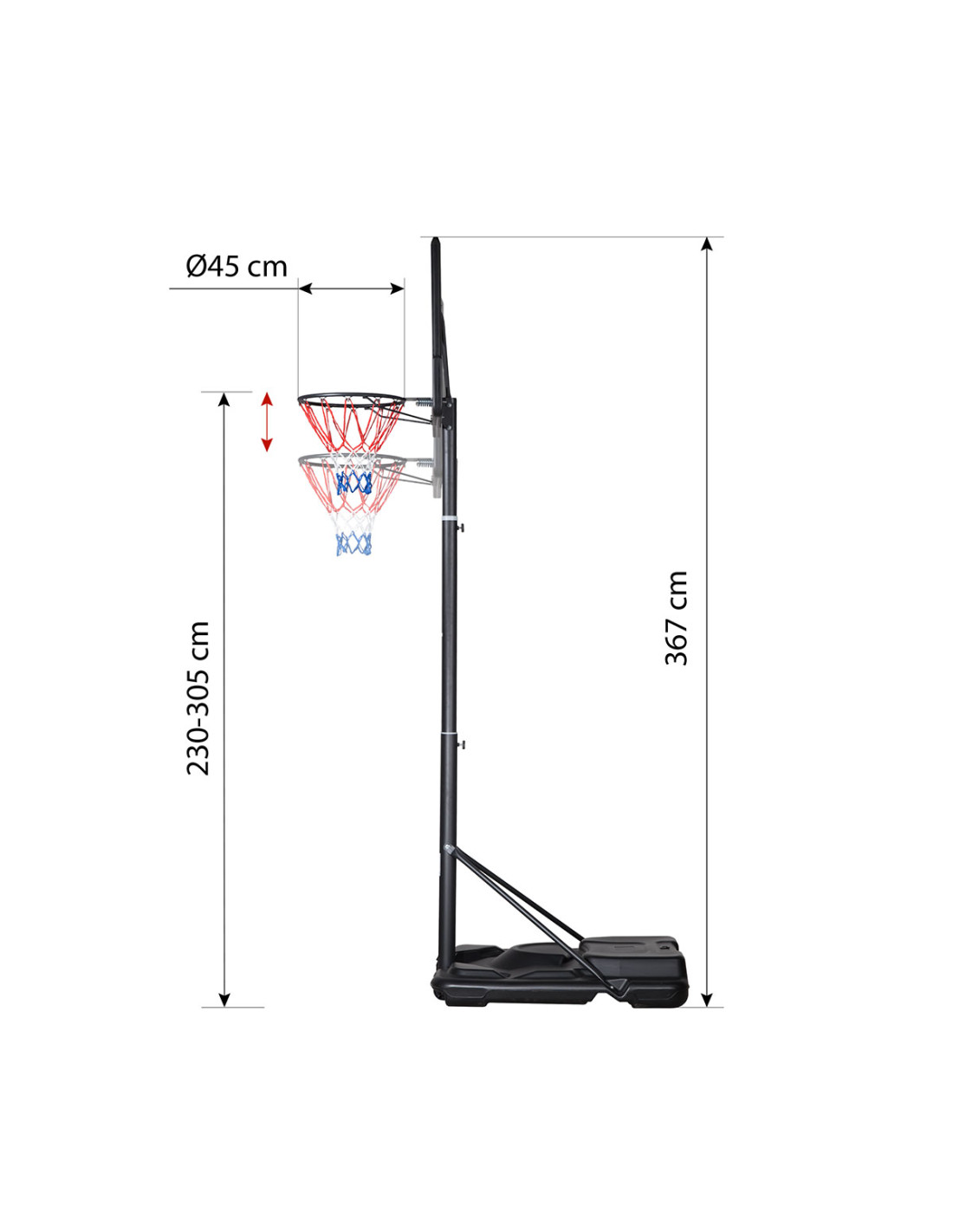 Благодарение на усъвършенствания механизъм за регулиране на височината, баскетболният кош се адаптира перфектно към вашите нужди. Независимо дали сте начинаещ или опитен шампион, нашият баскетболен кош ви предлага идеалната обстановка, за да реализирате напълно своя потенциал.