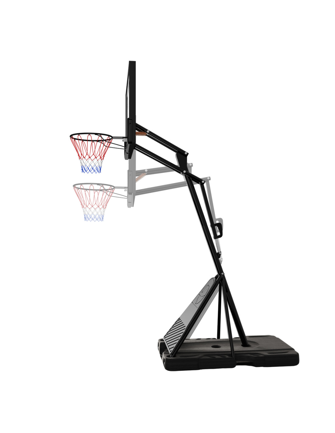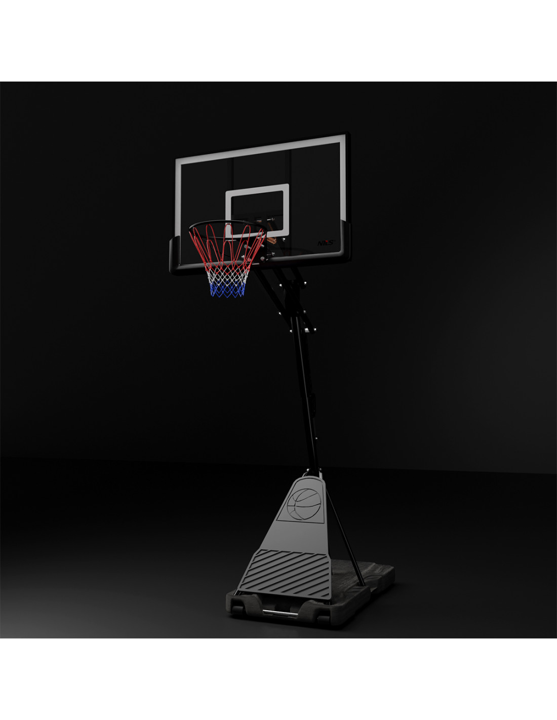 Баскетболният кош ZDK024 разполага със свободностояща подвижна стойка, което го прави идеален за индивидуални тренировки или баскетболни игри. Благодарение на регулируемата височина, височината на обръча може да се регулира според височината и възможностите на потребителя. Продуктите на NILS се отличават с най-високо качество на материалите. Баскетболното табло е изработено от силно удароустойчив поликарбонат. Този материал предлага отлично качество на свирене. Методът на монтиране на баскетболното табло осигурява стабилност. В комбинация със стоманения обръч, който разполага с еластичен механизъм за накланяне, изживяването при игра е изключително. Транспортните колела са прикрепени към стабилния резервоар за вода или пясък. Капацитетът на резервоара е 114,7 литра, което прави продукта изключително мобилен, но стабилен. Всеки структурен елемент е устойчив на атмосферни влияния. Всички характеристики на тази система за баскетболни кошове гарантират отлични условия за игра и дълготрайна употреба.