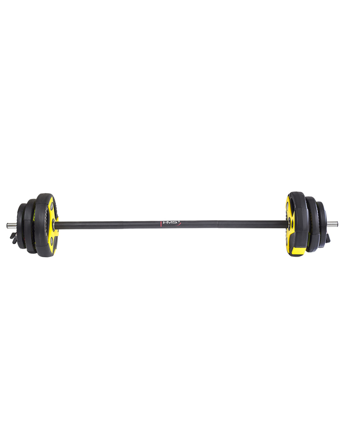 Фитнес щанга SBP15 HMS е идеална както за групови, така и за индивидуални тренировки. Комплектът се състои от щанга от 3 части, три чифта тежести с различни вариации на теглото и две пружинни яки.
