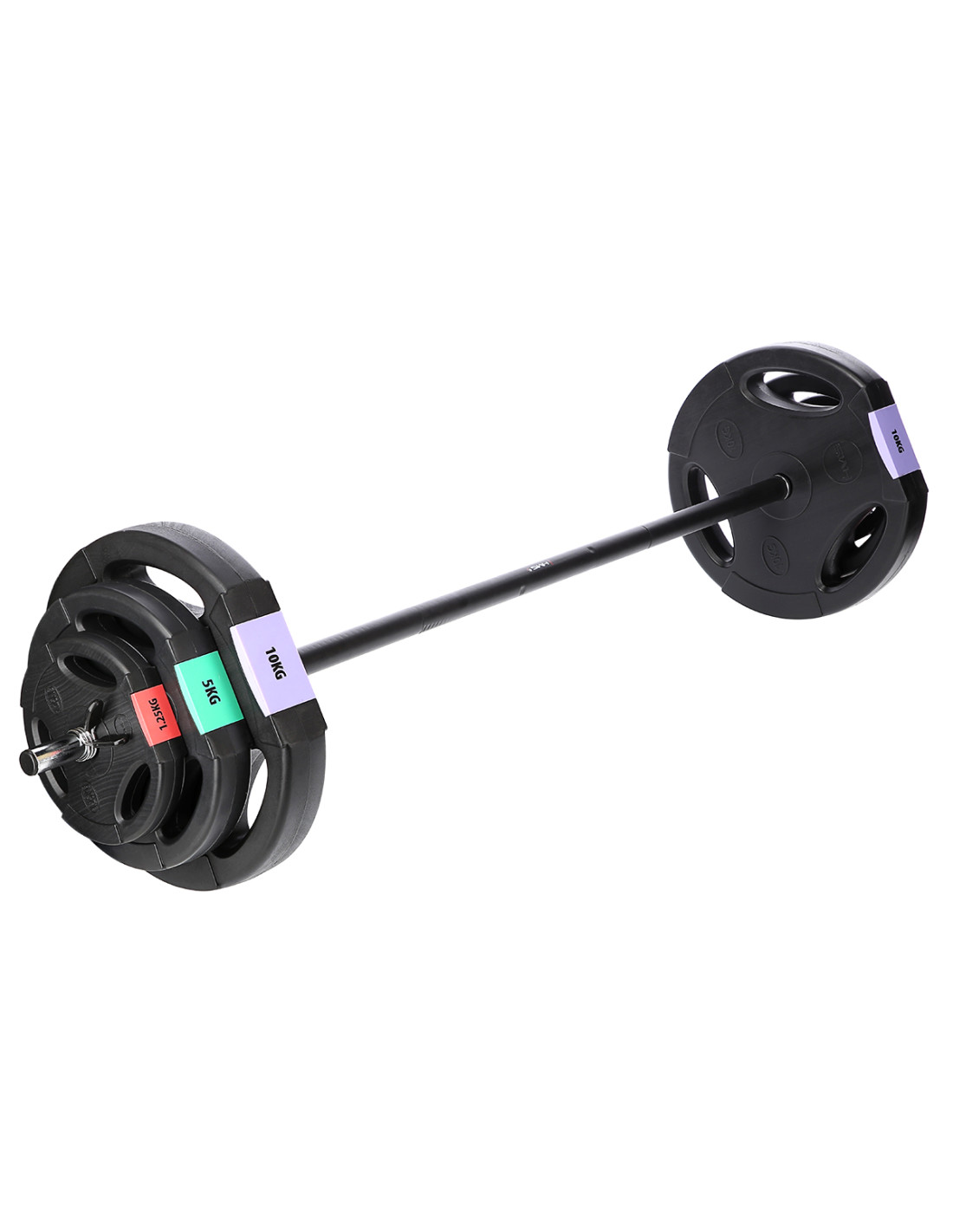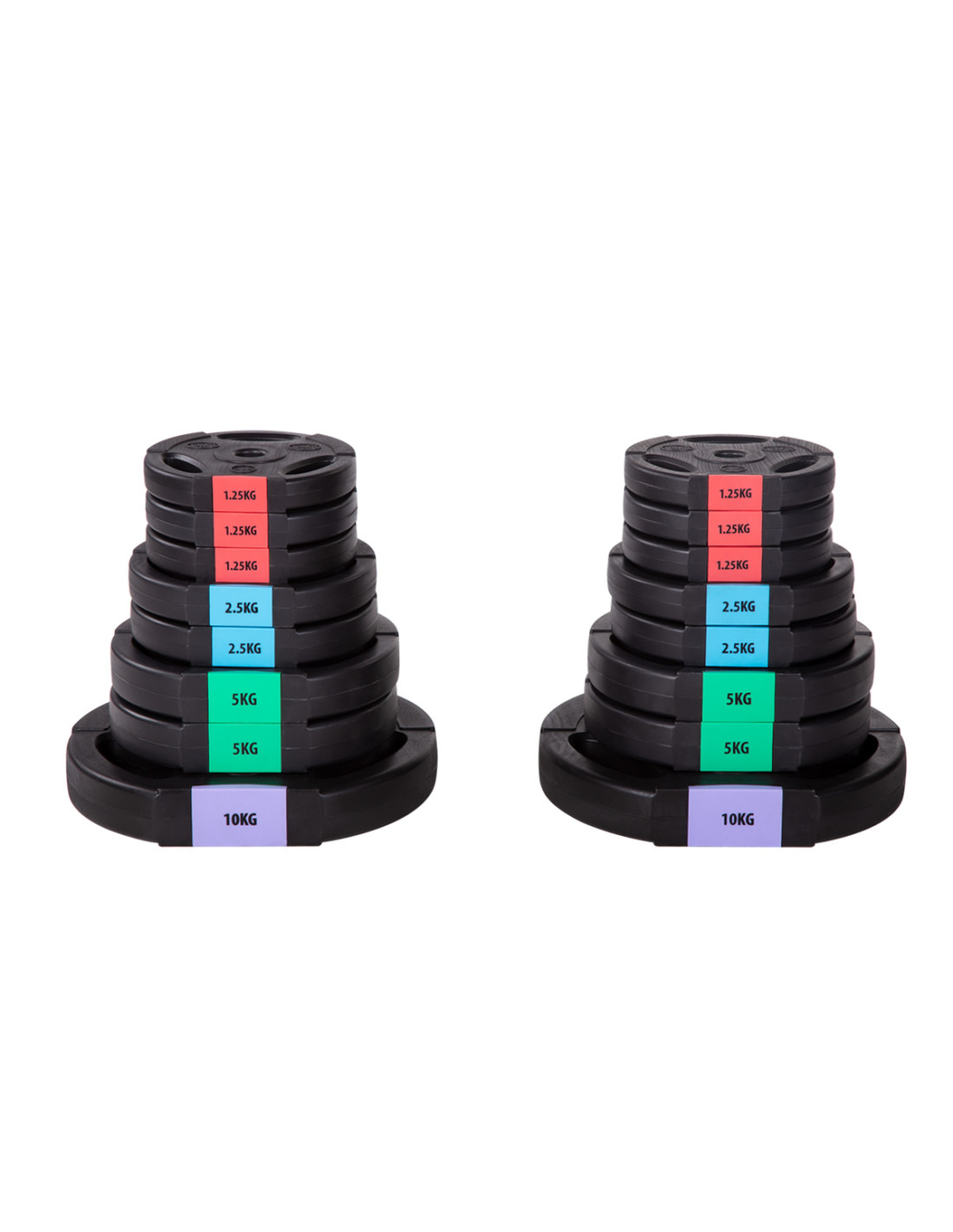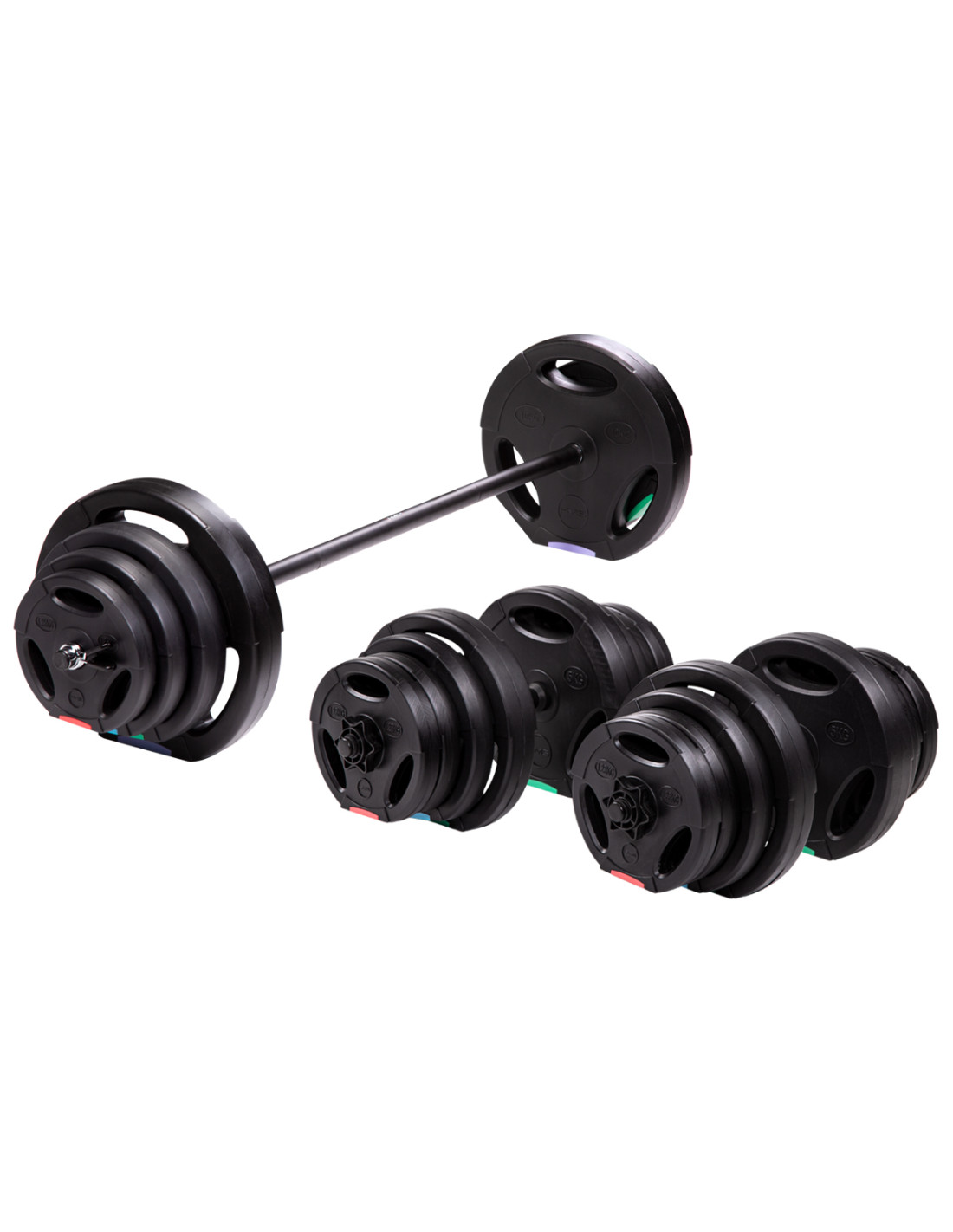 - Брой зареждания в комплекта: 6x 1.25 kg / 4x 2.5 kg / 4x 5 kg / 2x 10 kg