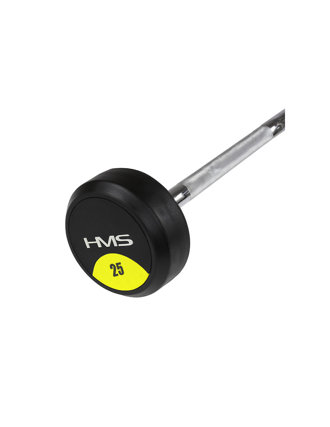 Мряна / дълга щанга GSG HMS с гумени плочи за тежести се предлага в следните варианти на тегло: 10, 15, 20, 25, 30, 35, 40 или 50 килограма.