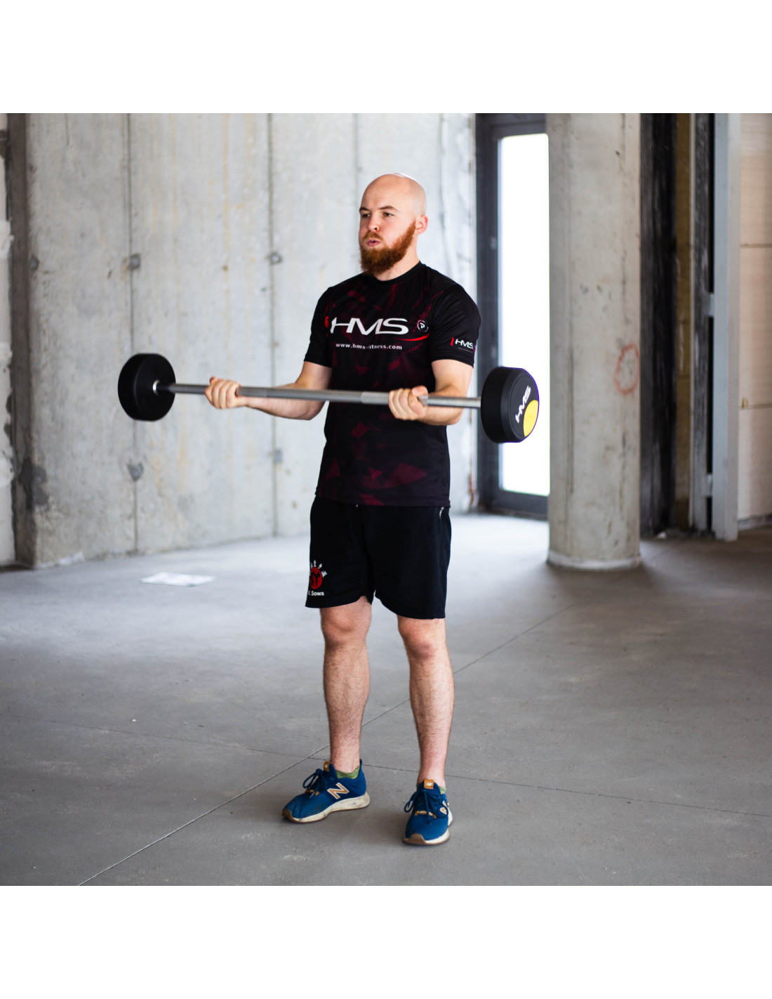 Мряна/дълга щанга GSG HMS ще задоволи и най-взискателните начинаещи в силовите тренировки. Изработен е от висококачествена закалена хромирана стомана. Разполага с назъбена дръжка за сигурно захващане. Тежестите плочи са покрити с висококачествена гума.