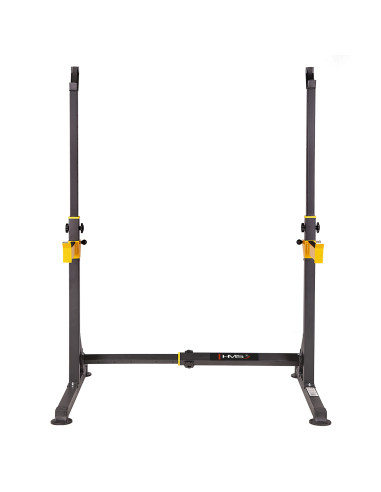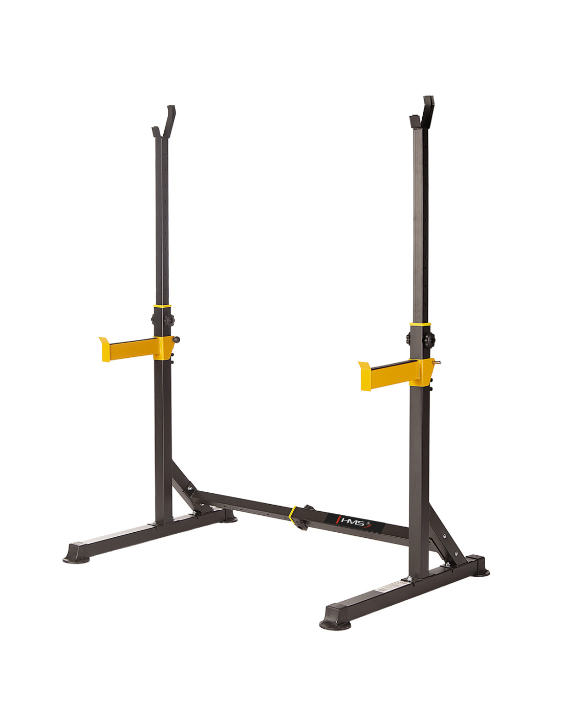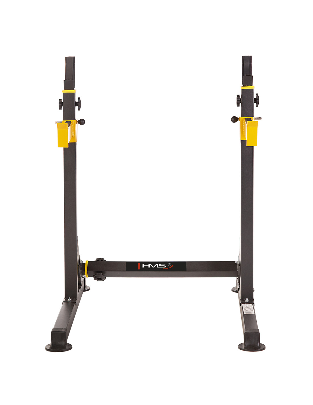 Стойката STR18 HMS е много безопасна и стабилна. За да осигури максимална безопасност, разполага с рафтове, които ви предпазват по време на клякания. Това решение ви позволява да изпълнявате упражненията сами без помощ и без страх от злополука.