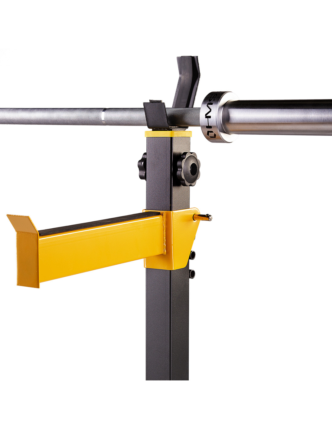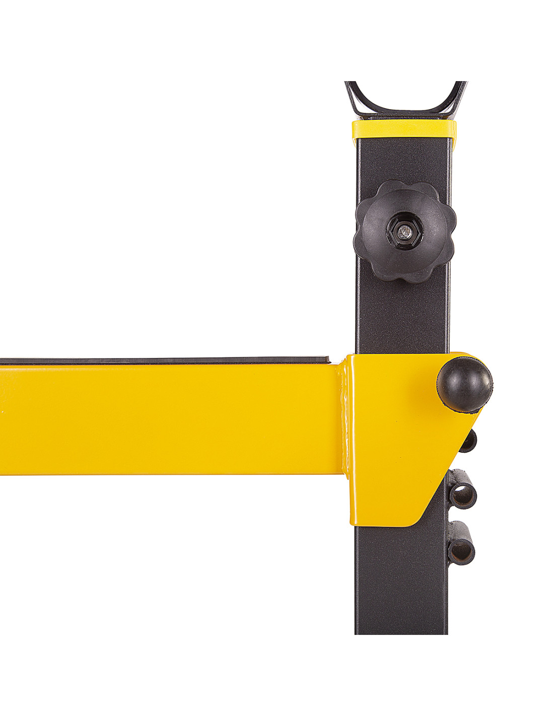 STR18 HMS е многофункционална стойка за щанги. Регулирането на височината и ширината на багажника го прави идеален за различни упражнения. Можете лесно да изпълнявате клекове с щанга и лежанка с лежанка. Адаптирането на този продукт към височината на потребителя също е лесно благодарение на многобройните опции за регулиране на височината. Всеки се наслаждава на собствения си уникален захват на щангата по време на упражнения. Регулирането на ширината осигурява идеално разстояние за захващане.