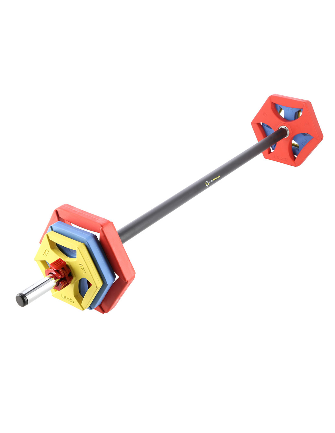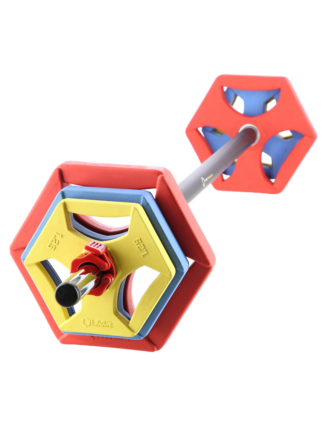 SBP21 HMS PREMIUM е фитнес щанга. Идеален е за групови и индивидуални тренировки. Комплектът включва щанга, три чифта щанги с различно тегло и яки за щанга Lock Jaw.