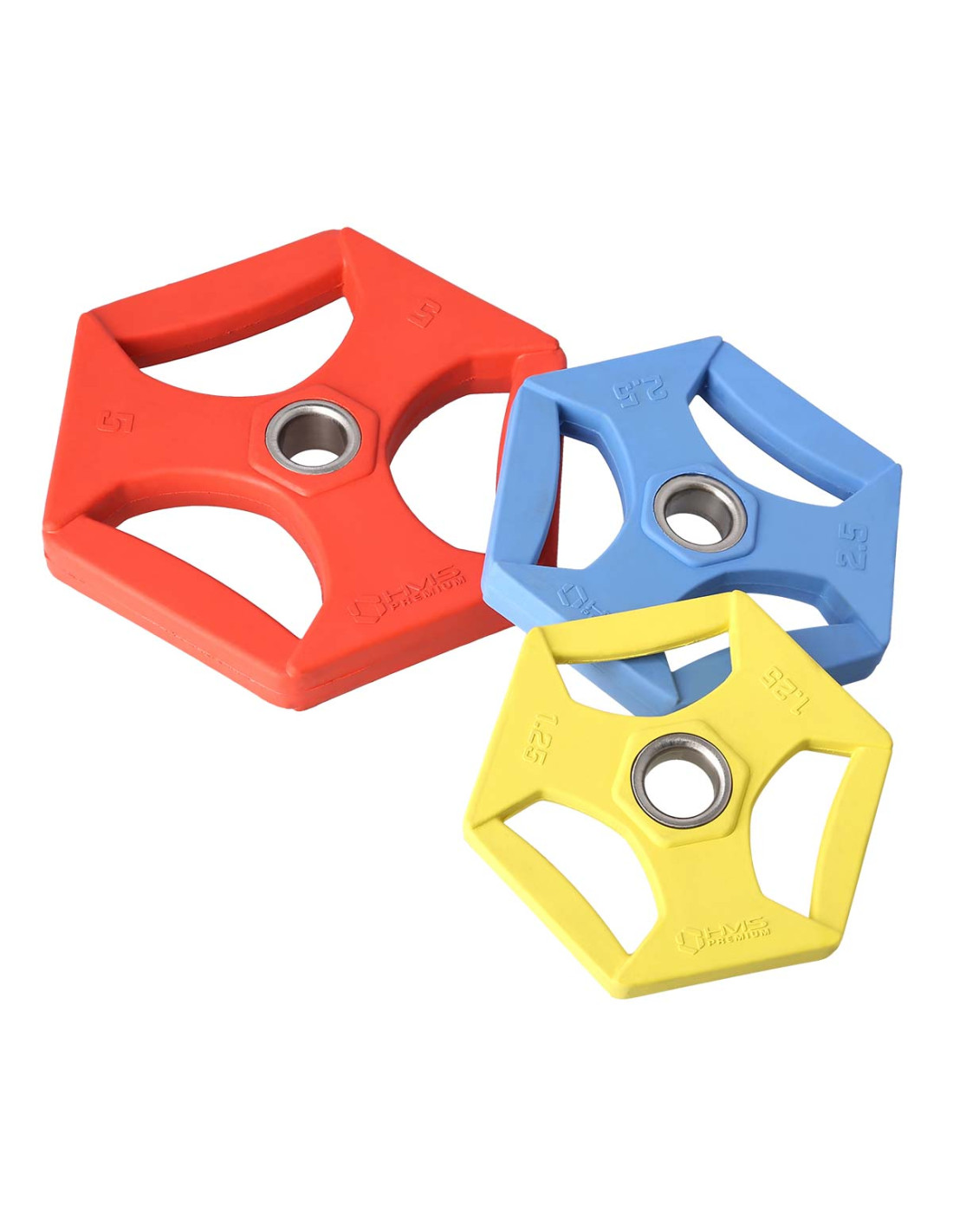 - Тегло: 2 x 1,25 кг, 2 x 2,5 кг, 2 x 5 кг