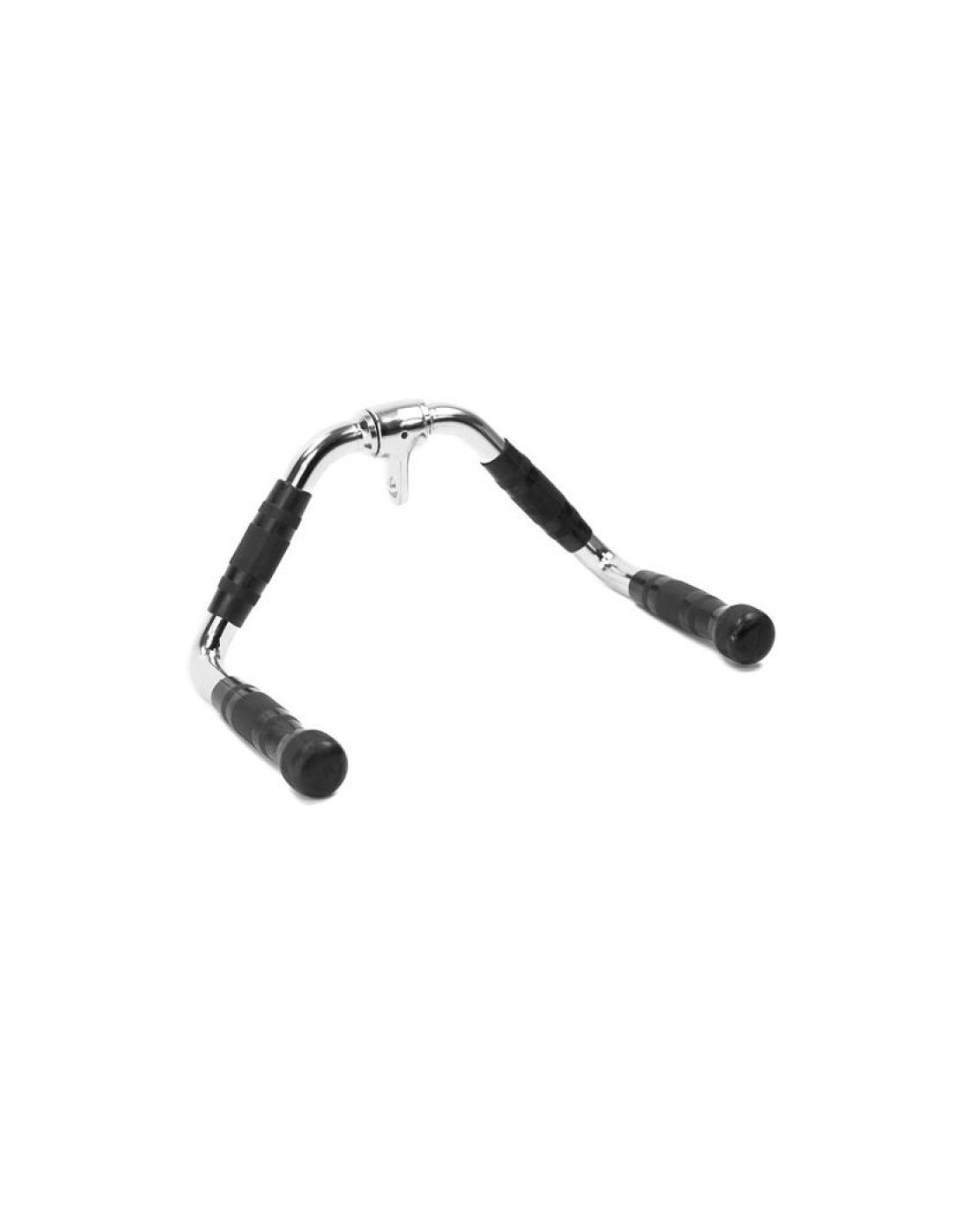 Формата на дръжката увеличава обхвата на движение, за разлика от единичен или тесен хват. Използването на този продукт също така увеличава мускулното напрежение, което прави вашата тренировка по-ефективна. Структурата на дръжката осигурява идеална позиция на ръката и изисква правилното изпълнение на движенията. Широкото разстояние ви позволява да изпълнявате упражнения под различен ъгъл, отколкото с тесен хват. Това гарантира ефективна тренировка и цялостно мускулно развитие на определена мускулна група. Дръжката за гребане е изработена от стомана, което ви позволява да изпълнявате упражнения дори при големи натоварвания.