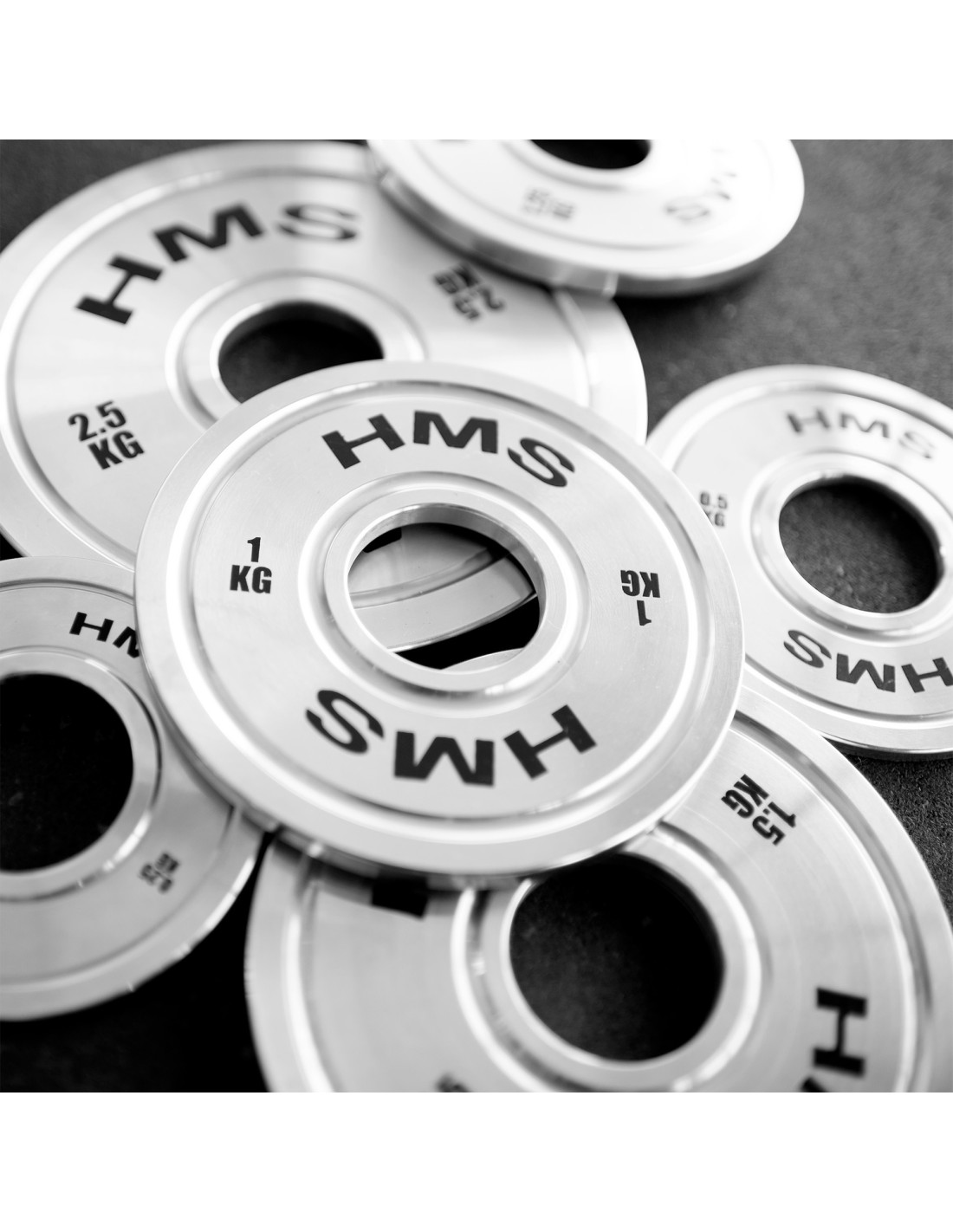 Всяка табела с тежести има цветна ивица около ръба, която отговаря на международните олимпийски стандарти. Това ви позволява бързо да идентифицирате теглото на товара, което улеснява организирането на вашата тренировка и динамичната промяна на теглото по време на серия.
