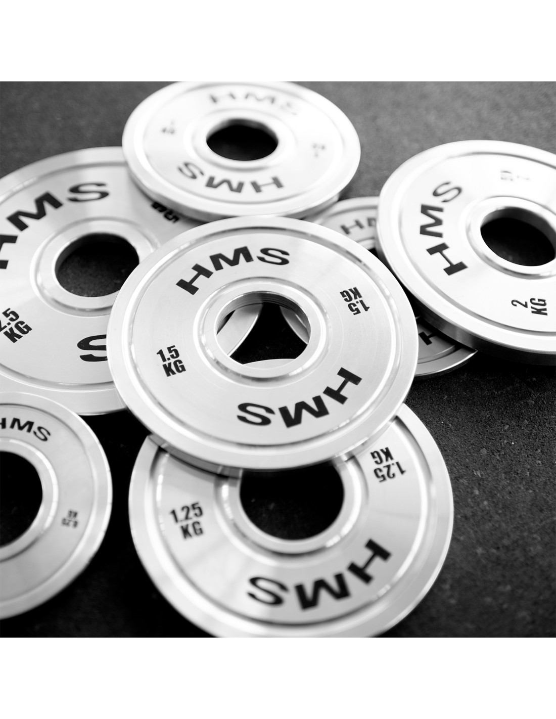 Всяка табела с тежести има цветна ивица около ръба, която отговаря на международните олимпийски стандарти. Това ви позволява бързо да идентифицирате теглото на товара, което улеснява организирането на вашата тренировка и динамичната промяна на теглото по време на серия.