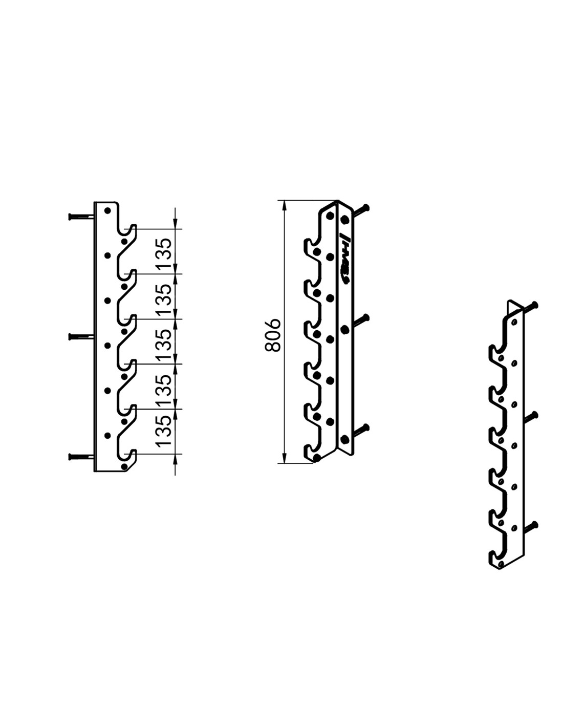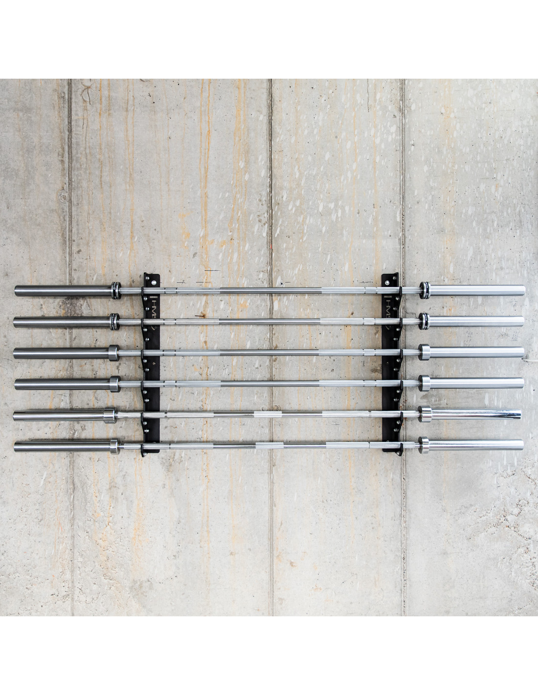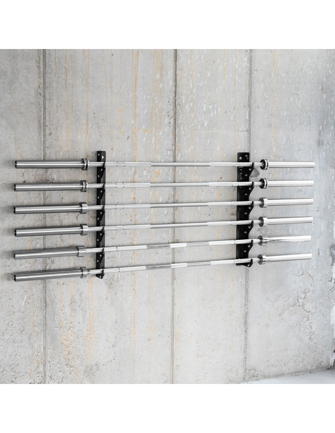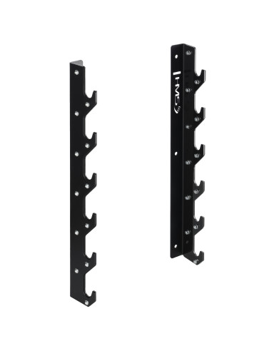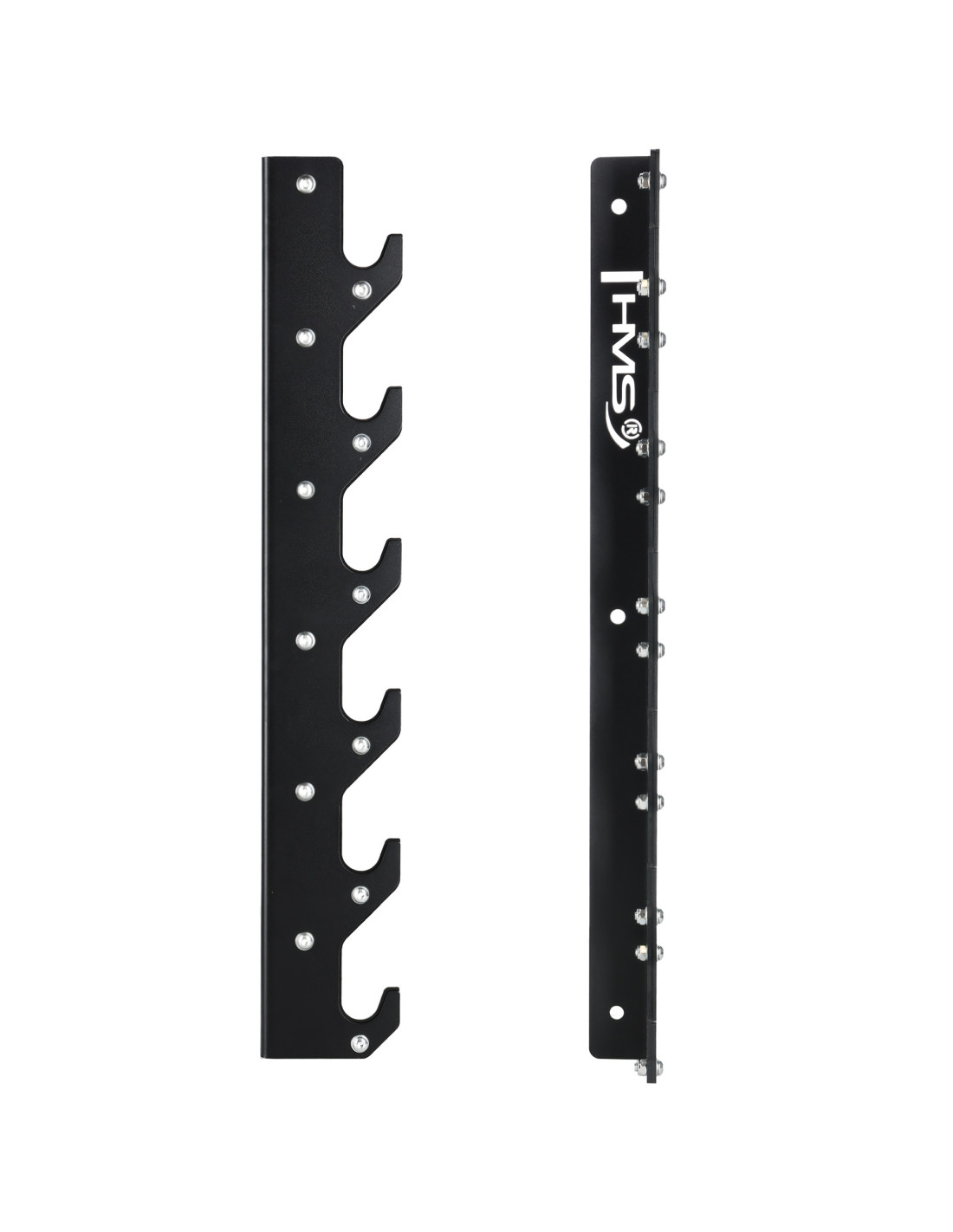 Закачалката позволява хоризонтално съхранение на до 6 щанги, осигурявайки стабилност и защита от повреда. Благодарение на здравата си конструкция, STR46 запазва пълната си здравина и безопасност дори при пълно натоварване до 180 кг. Не забравяйте да прикрепите закачалката към здрава бетонна стена.