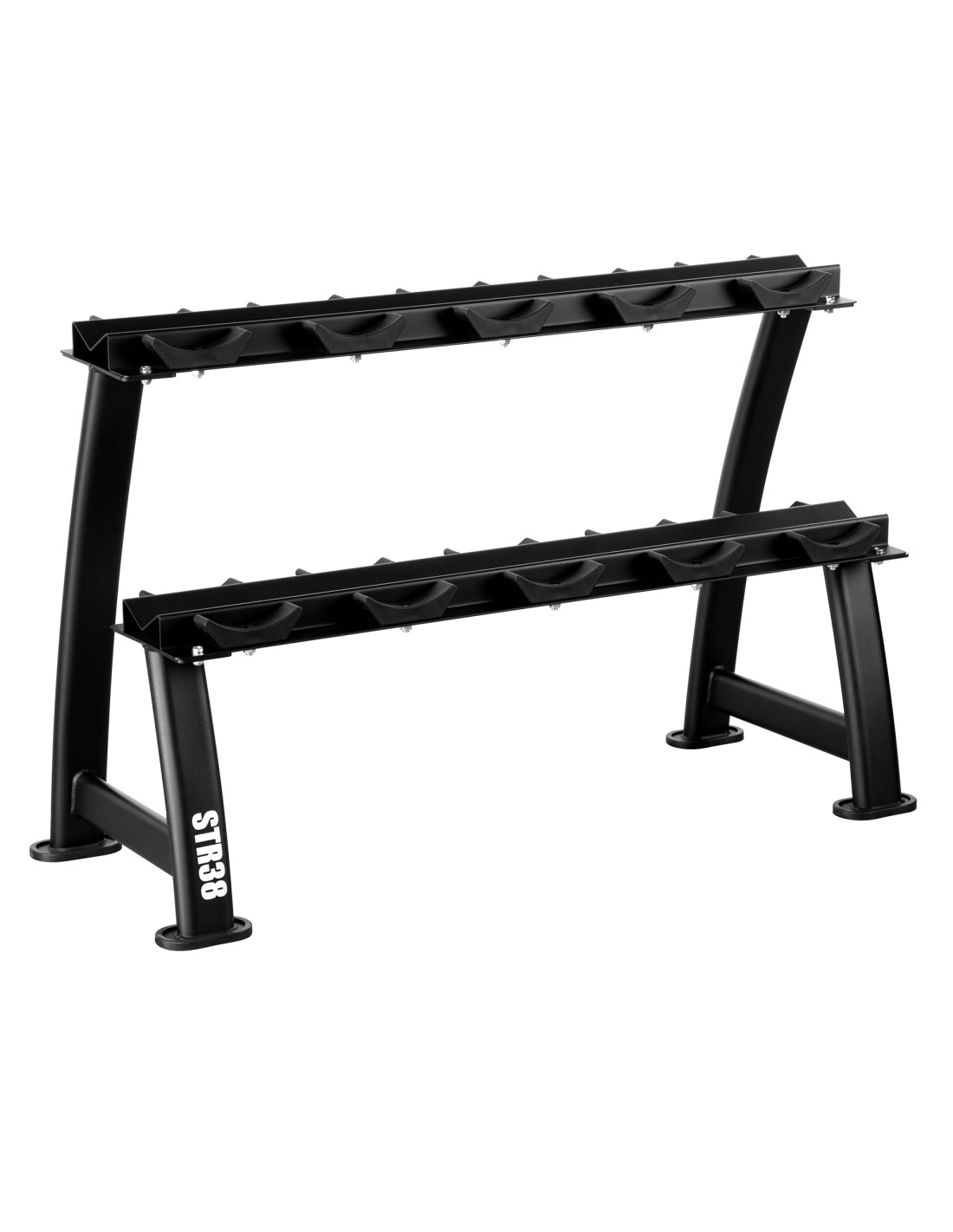 STR38 предлага две нива за съхранение, които могат да поберат до 10 чифта дъмбели. Леко наклонената повърхност прави хващането на дъмбелите удобно и не изисква прекомерно изпъване на китката, намалявайки напрежението върху ставите и увеличавайки комфорта.