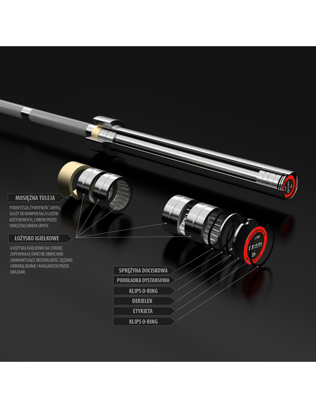 Олимпийската щанга GO700 HMS разполага с осем иглени лагера (по четири от всяка страна), позволявайки на секцията с тежести да се върти плавно. Този дизайн елиминира напрежението в краищата на ролките, което води до по-дълъг експлоатационен живот на иглените лагери. Въпреки малкото си напречно сечение, иглените лагери предлагат висока устойчивост на вибрации и висока товароносимост.