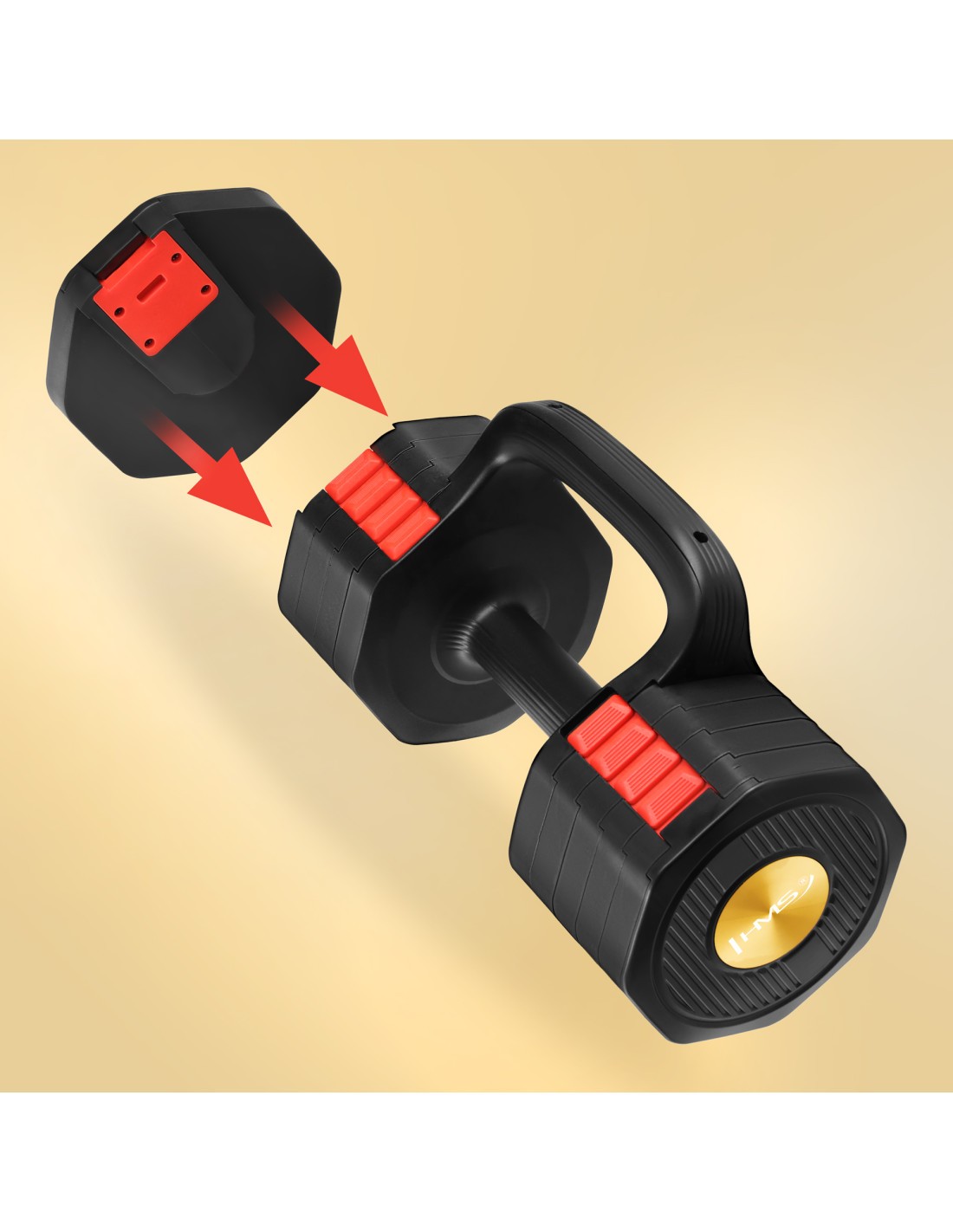 Умен тренировъчен уред за тренировки на цялото тяло. HL05 3in1 HMS комбинира регулируема дъмбел, основа за лицеви опори и пудовка – укрепвайки цялото ви тяло, като същевременно спестявате място във вашия домашен фитнес.