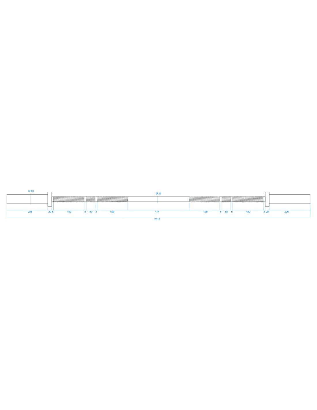 Внимателното набраздяване осигурява сигурно и удобно захващане на щангата. Максималното натоварване е 450 килограма. Диаметърът на ръкохватката от 25 мм осигурява голяма издръжливост и комфорт по време на тренировка. Щангата е идеална за крос тренировка. Процесът на хромиране, използван при тази щанга, гарантира, че външният й вид ще издържи много дълго време и осигурява най-добрата защита от ръжда.
