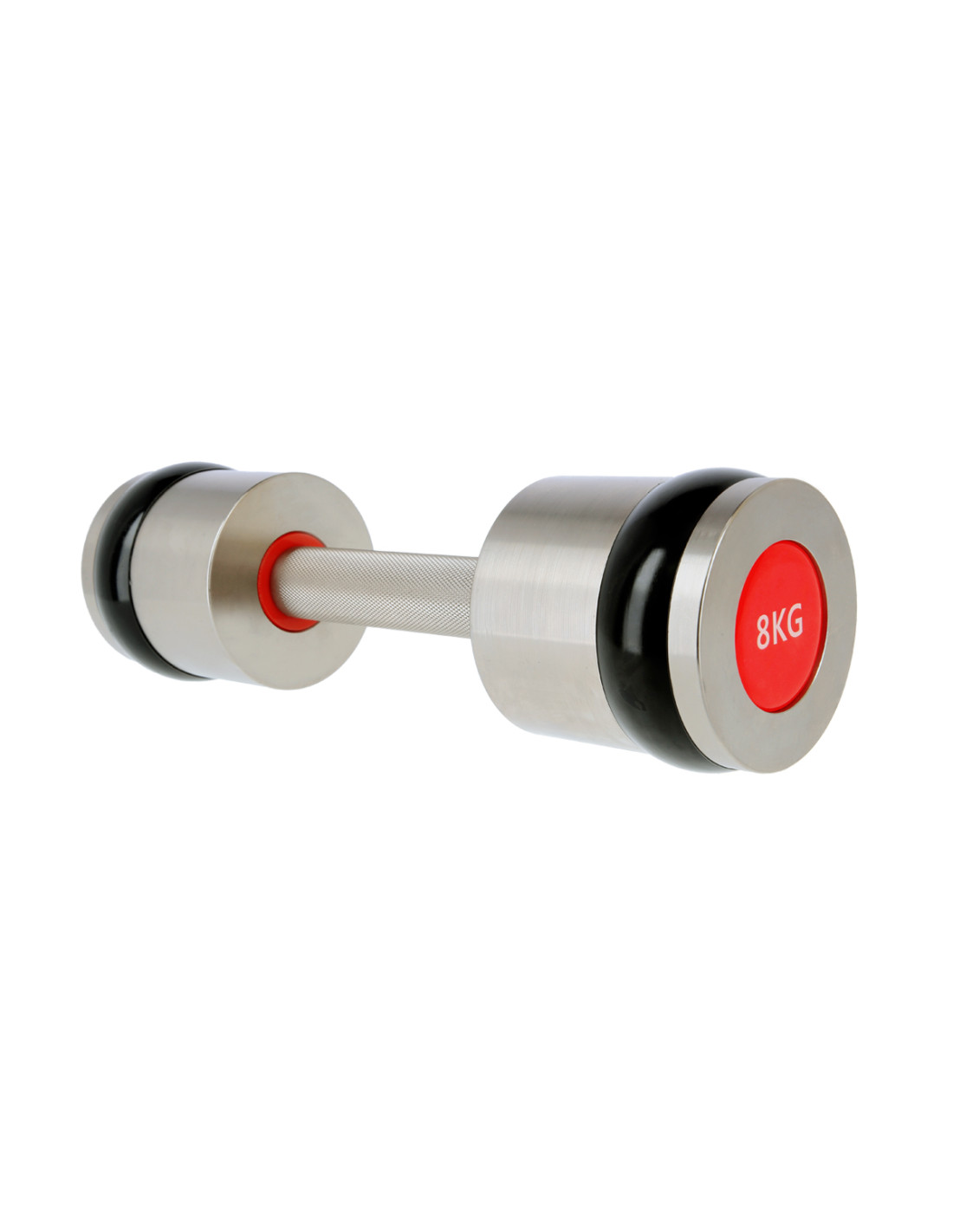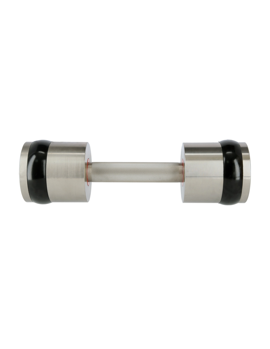 Дъмбелите са изработени от висококачествена хромирана стомана, осигуряваща висока устойчивост на надраскване и износване. Набраздената повърхност на дръжките гарантира, че дъмбелите пасват перфектно в ръката ви и няма да се плъзгат по време на тренировка. Две силиконови капачки отстрани гарантират, че дъмбелите няма да повредят пода, ако бъдат изпуснати. Могат да се поставят върху поставка за дъмбели или на пода. Дъмбелите се предлагат с тежести от 1 до 10 кг.