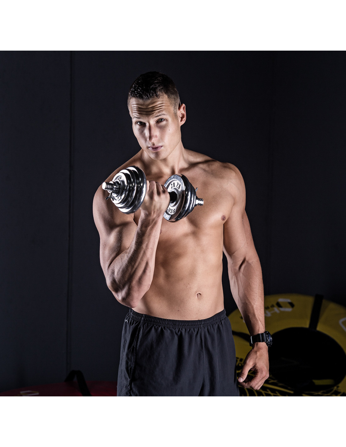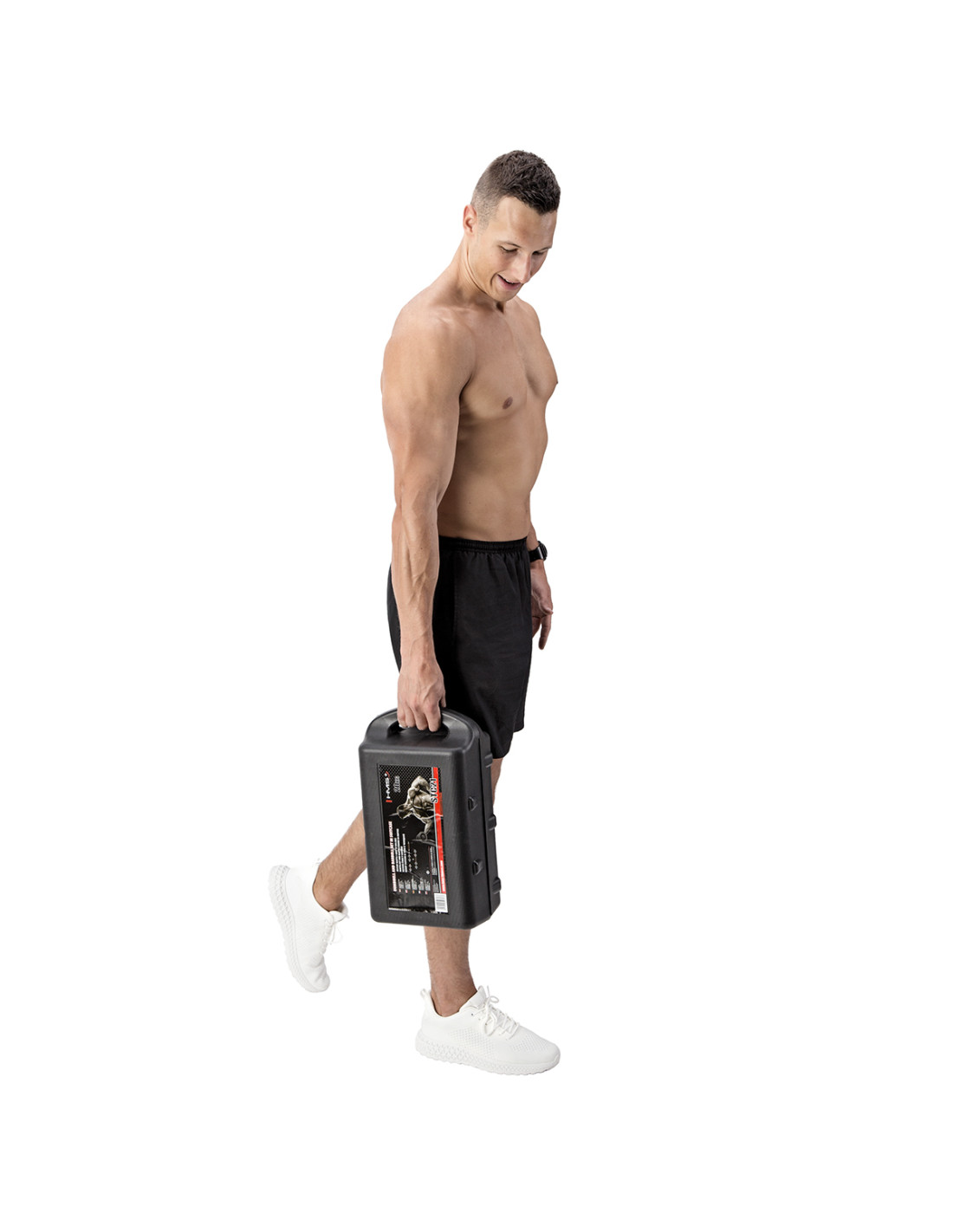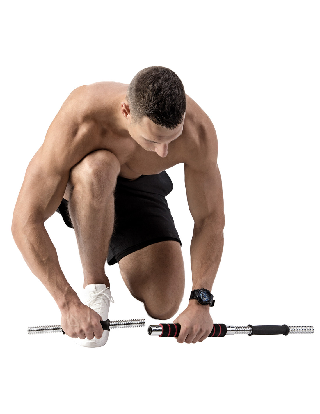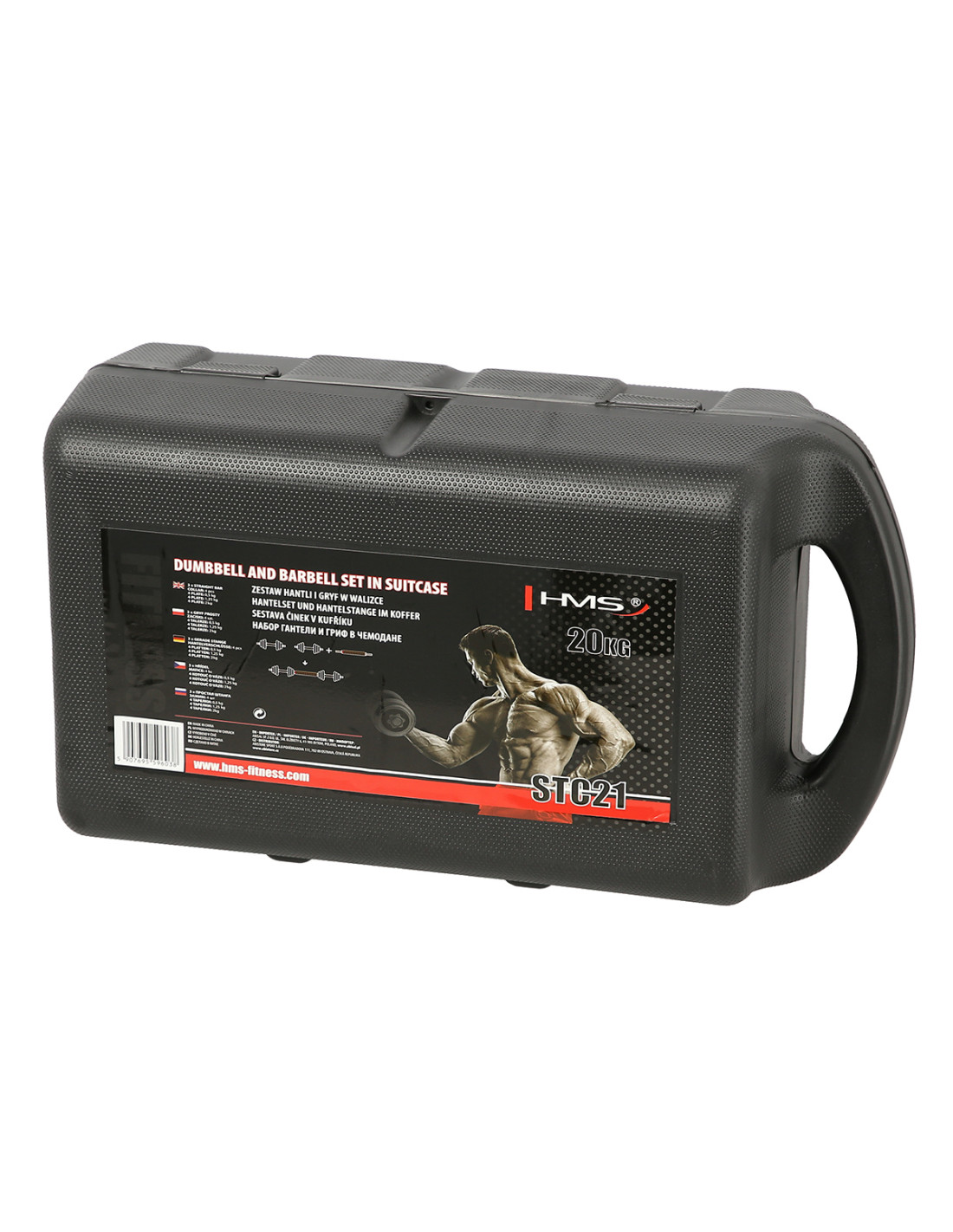 STC21 HMS е комплект, състоящ се от два дъмбела със сменяеми плочи за тежести. Специален конектор ви позволява да комбинирате двата дъмбела в една щанга. Това е иновативно и спестяващо място решение, което значително разширява обхвата на възможностите за упражнения. Самият процес е много прост и отнема много малко време. С комплекта STC21 HMS на ваше разположение можете да изпълнявате упражнения за всички мускулни групи и в различни форми.