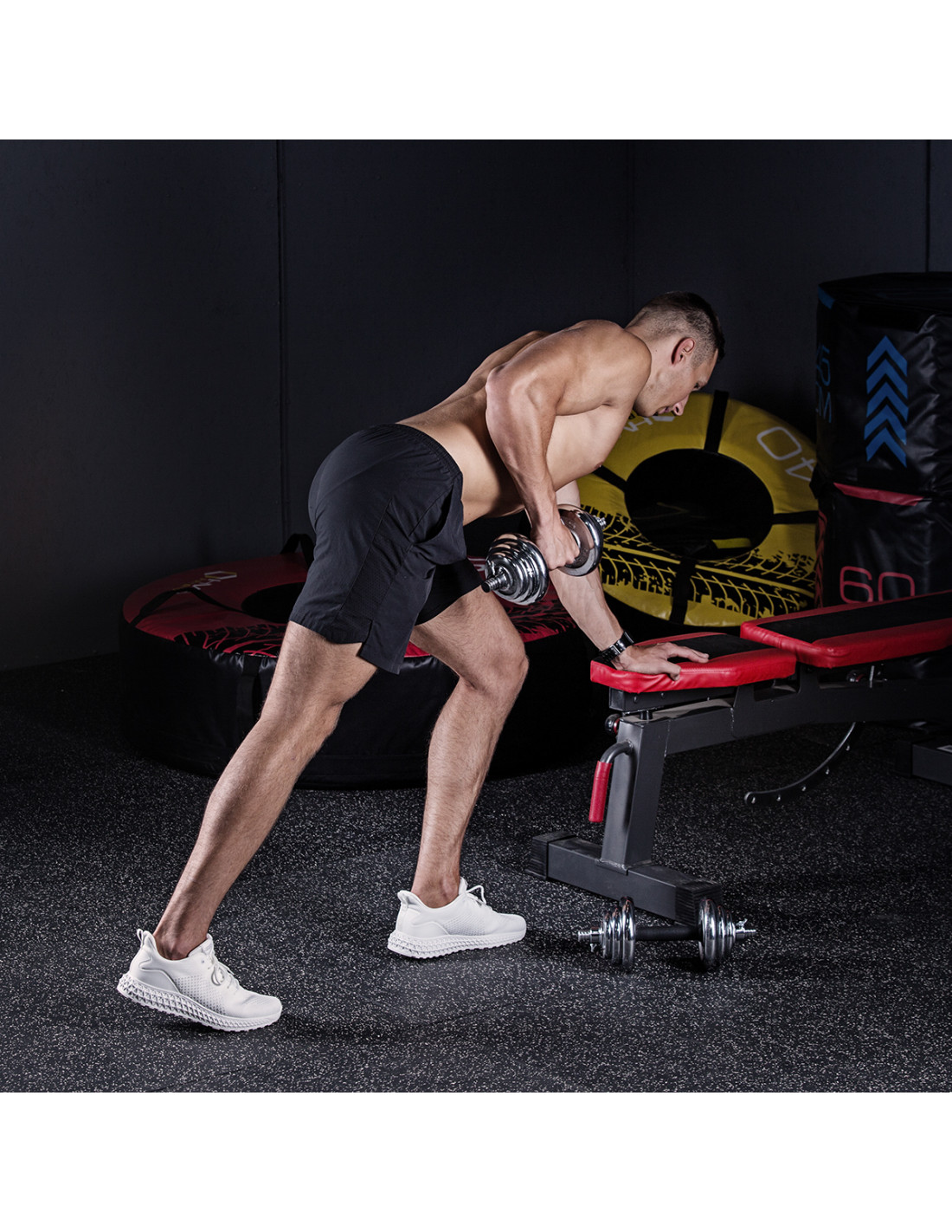 В напълно оборудвана фитнес зала дъмбелите и щангата са от съществено значение. В домашната фитнес зала обаче запазването на пространството е от решаващо значение. Нашият комплект HMS 2 в 1 STC21 е идеално решение и за двете.