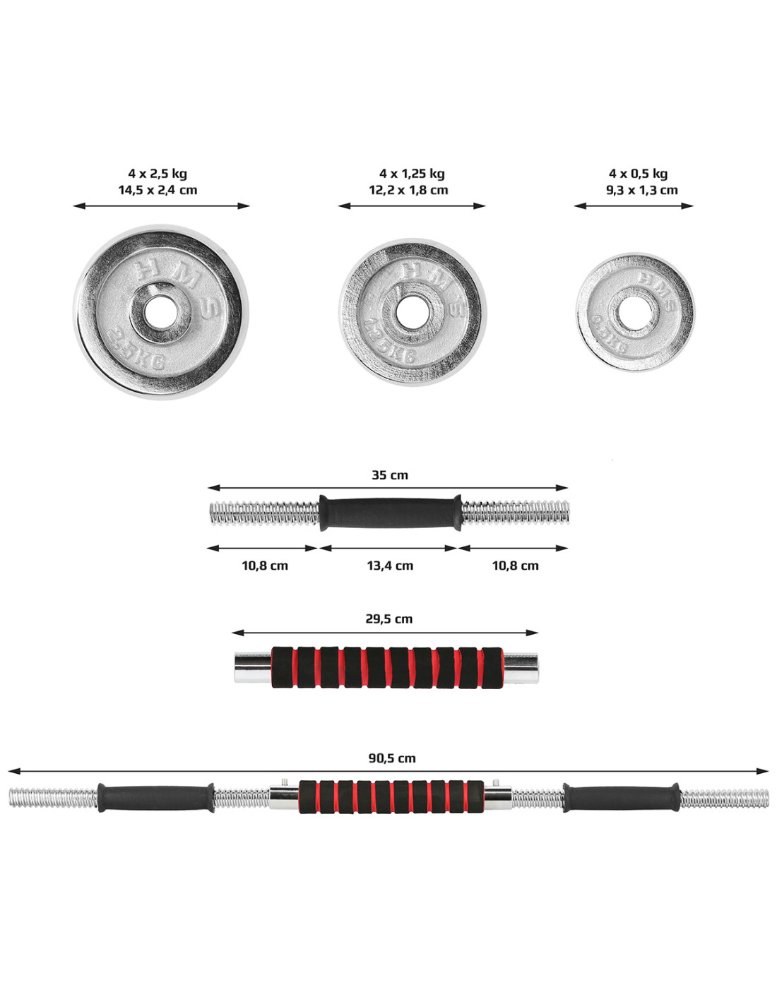 Дъмбели/Щанга в калъф, хромиран, 2х10 кг HMS