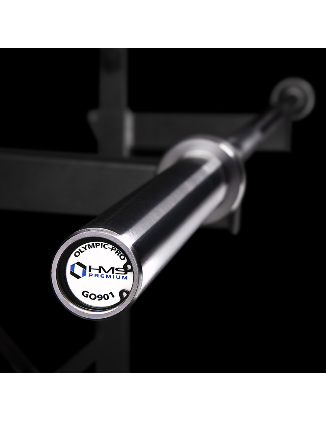 Олимпийската щанга GO901 HMS PREMIUM е изработена от специална хромирана стомана, която е преминала процес на закаляване. Този продукт с марка HMS се характеризира със своята издръжливост и идеална еластичност. PSI рейтингът за олимпийската щанга GO901 е 215 000. В комплекта са включени две бързи закопчалки. Внимателното набраздяване осигурява сигурно и удобно захващане. Максималната товароносимост е 900 кг. 30 мм диаметър на захващащата част осигурява голяма издръжливост и комфорт по време на тренировка. Процесът на хромиране, използван при тази щанга, гарантира нейния дълготраен външен вид и оптимална защита от ръжда.