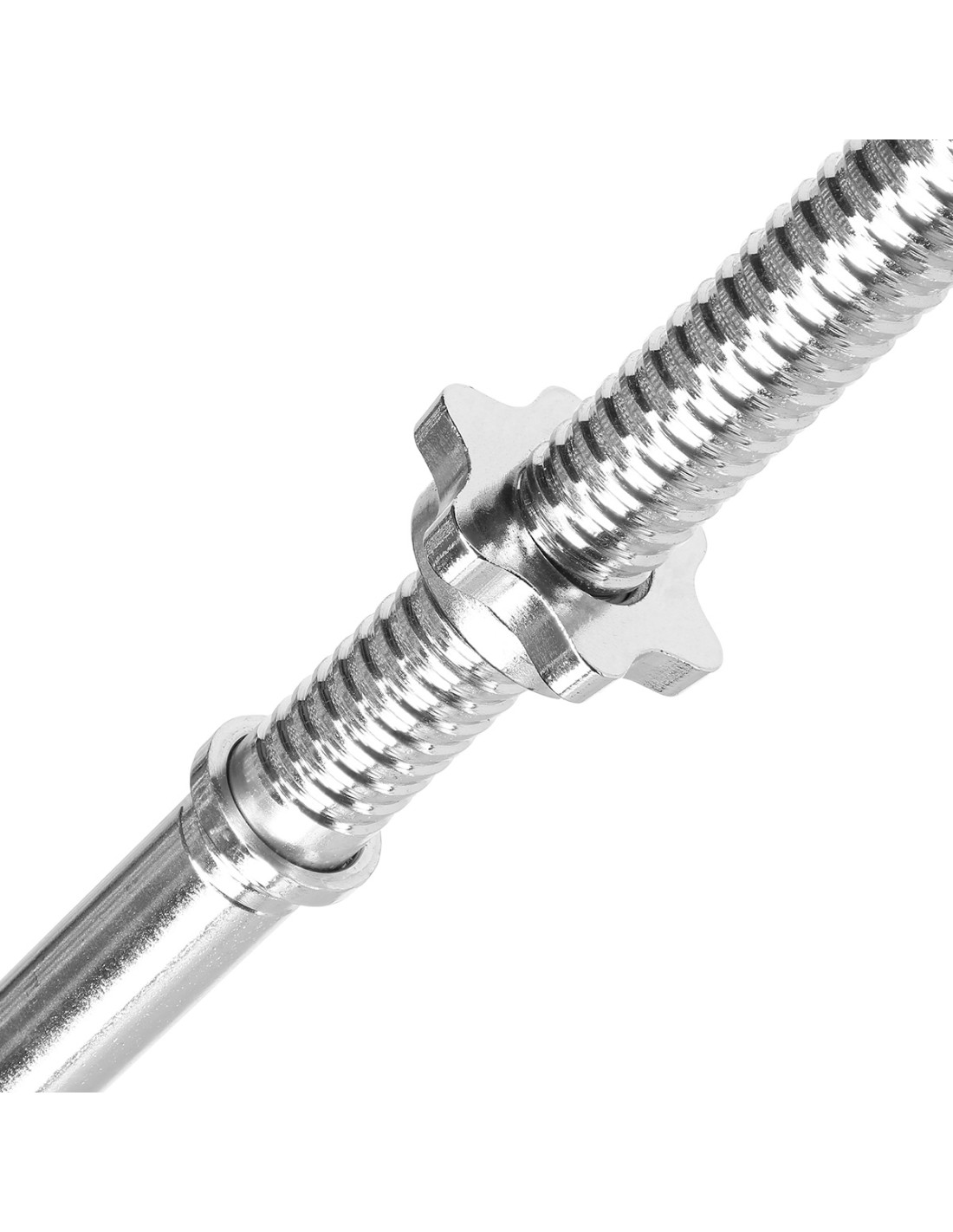 Една част от щангата е с резба, което ви позволява бързо и безопасно да прилагате тежестта. Лостът с щанга е изработен от стоманена щанга, която е преминала през процес на закаляване. Диаметърът му от 30 мм осигурява голяма издръжливост и комфорт по време на тренировка.