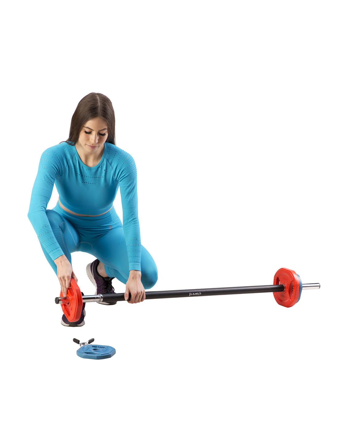 Изработен е от висококачествена, хромирана стомана, което допринася значително за изключителната издръжливост на продукта. Освен това е покрит със специална пяна, така че да стои удобно в ръката ви и да не се плъзга по време на тренировка. Това предотвратява образуването на мазоли и ожулвания. Комплектът включва и пружинни скоби, които закрепват плочите с тежести към щангата. Това също така предотвратява плъзгането на плочите с тежести настрани, независимо от упражнението, което се изпълнява.