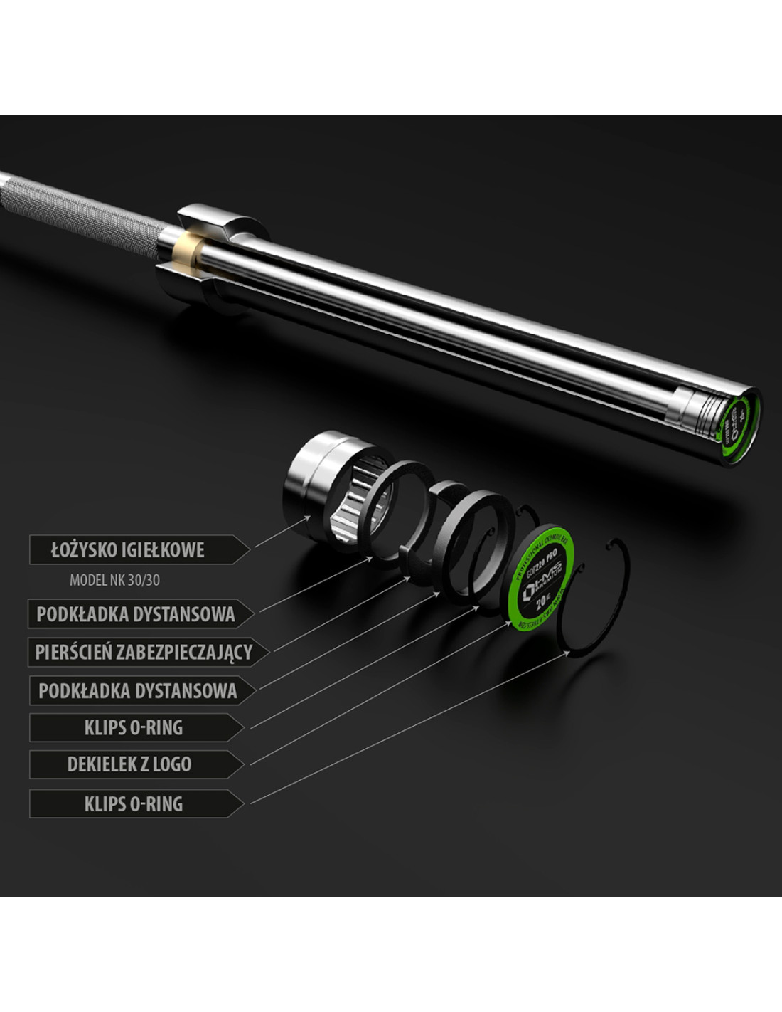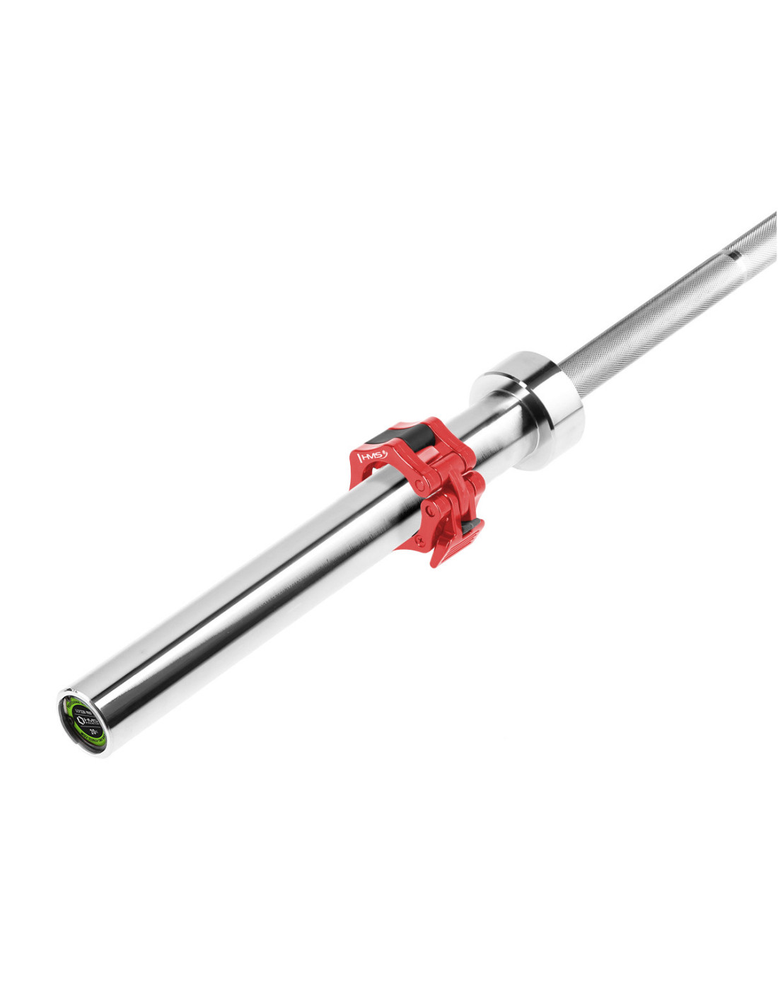 Правата олимпийска щанга GOP 220 PRO HMS разполага с яки Lock Jaw. Частта за захващане на тази щанга е внимателно назъбена за максимална сигурност и комфорт. Комплектът включва две яки Lock Jaw. Тези яки, благодарение на вътрешните си гумени елементи, предотвратяват разхлабването на плочите с тежести на щангата по време на тренировка. Този продукт е идеален за укрепване на горните мускулни групи, тренировка за преса от лег или вдигане на тежести. Правата олимпийска щанга е предназначена за тренировки с тежести с диаметър на отвора 51 мм. Специални заключващи ръкави осигуряват безопасност по време на тренировка. Диаметърът на щангата е 30 мм, което гарантира висока издръжливост и комфорт по време на тренировка. Процесът на хромиране, използван при тази щанга, гарантира нейния дълготраен външен вид и оптимална защита от ръжда.