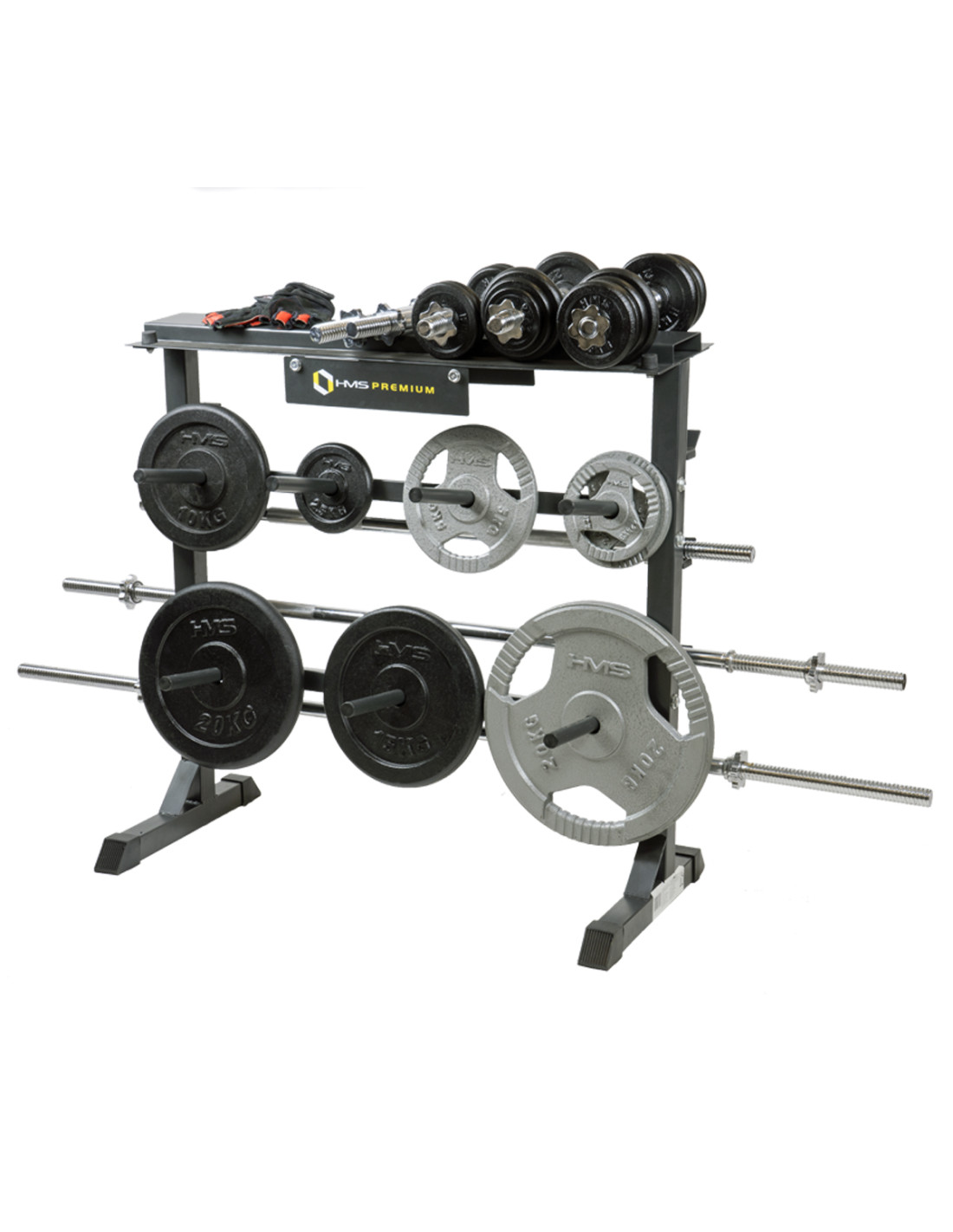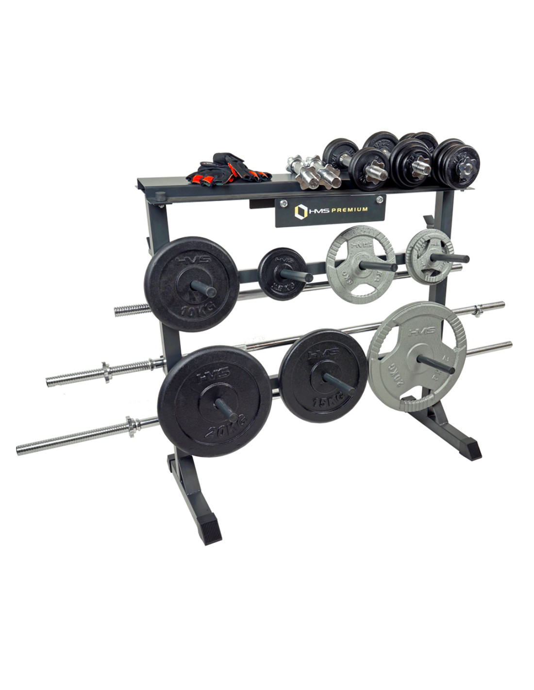Колкото по-голяма е вашата колекция от фитнес оборудване, толкова по-трудно е да намерите подходящо място за съхранение. Стойките HMS ви позволяват да държите всичко заедно. Стоманената стойка STR12 HMS е предназначена за съхранение на табели с тежести, дъмбели и щанги.