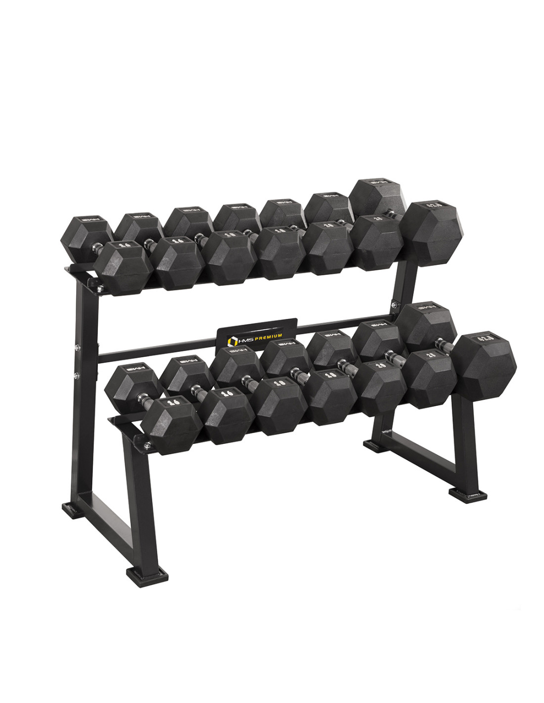 Колкото по-голямо е спортното оборудване, толкова по-трудно е да се съхранява. Стойките за дъмбели HMS ви помагат да държите цялото си оборудване на едно място. Стойката за дъмбели STR20 HMS PREMIUM е двуетажна и изработена от стомана. Тази стойка, ключова част от спортното оборудване, е подходяща както за фитнес зали, така и за домашна употреба. Дизайнът му позволява лесно и интуитивно повдигане и спускане на дъмбелите. Стойката осигурява комфорт по време на тренировка. Неговата здрава конструкция и висококачествена изработка гарантират безопасността на потребителя и цялото спортно оборудване.