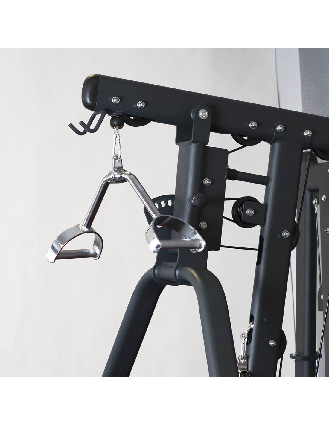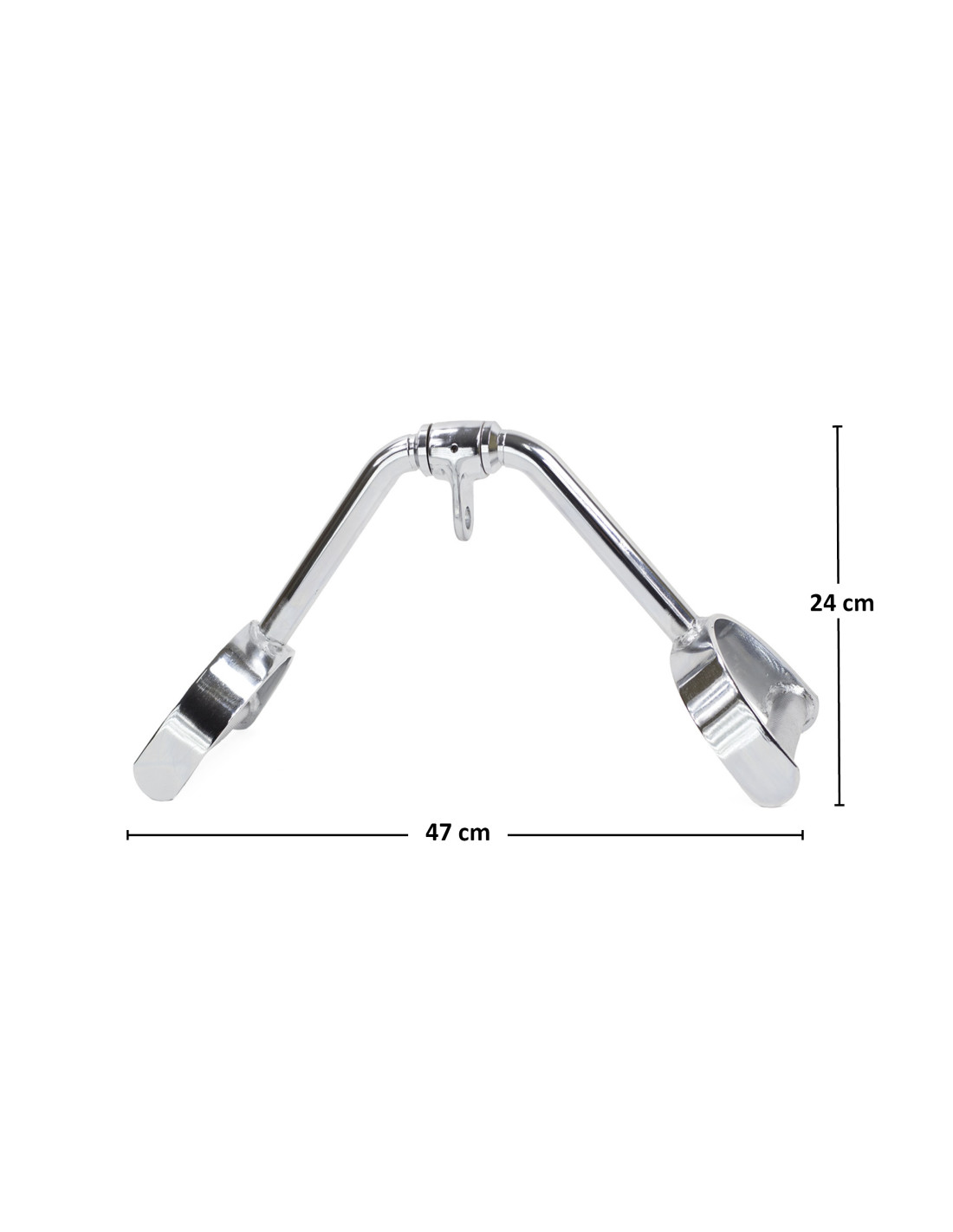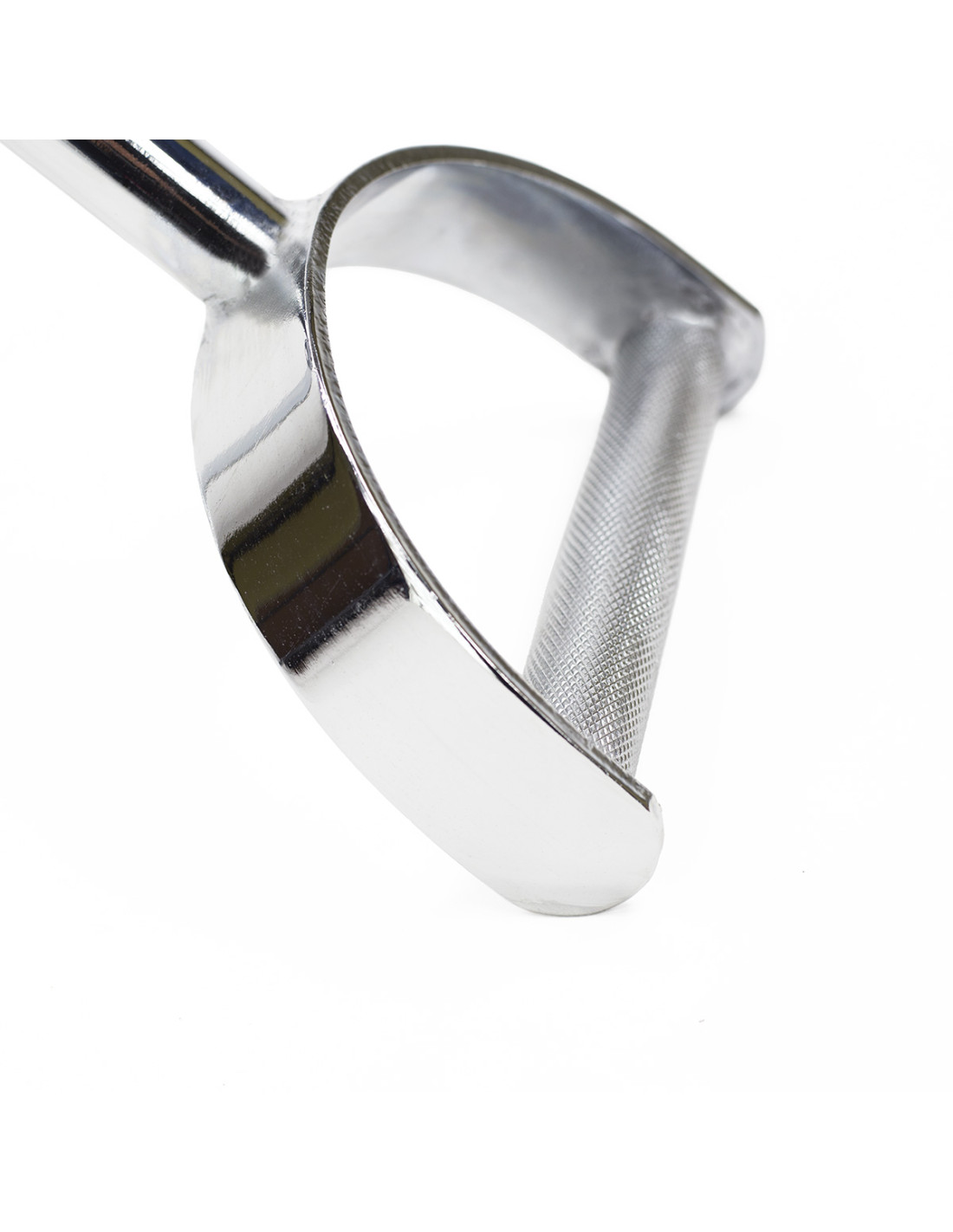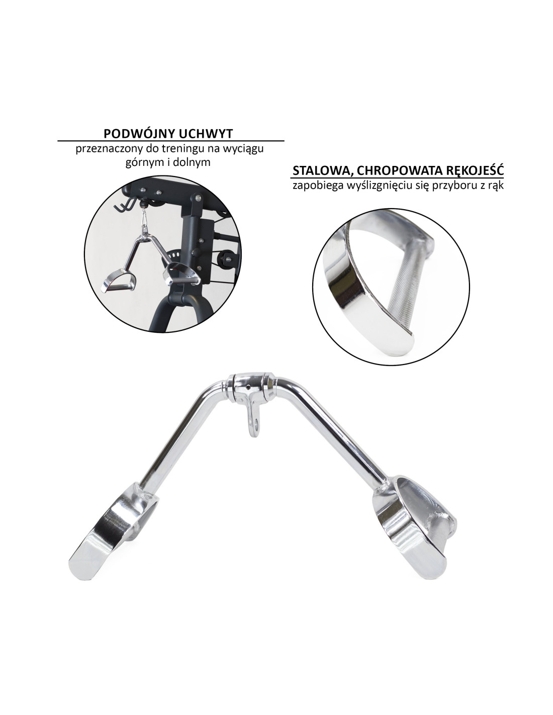 Структурата на дръжката осигурява идеална позиция на ръката и изисква правилното изпълнение на движенията. Широкият хват ви позволява да изпълнявате упражнения с алтернативен ъгъл на тесен хват. Това гарантира по-ефективна тренировка и цялостно мускулно развитие на определена мускулна група. Дръжката е изработена от висококачествена стомана. Това ви позволява да изпълнявате упражнения с високо натоварване. Назъбената стоманена дръжка предотвратява приплъзване, като изисква здраво захващане. Това също така подпомага развитието на мускулите на предмишницата.