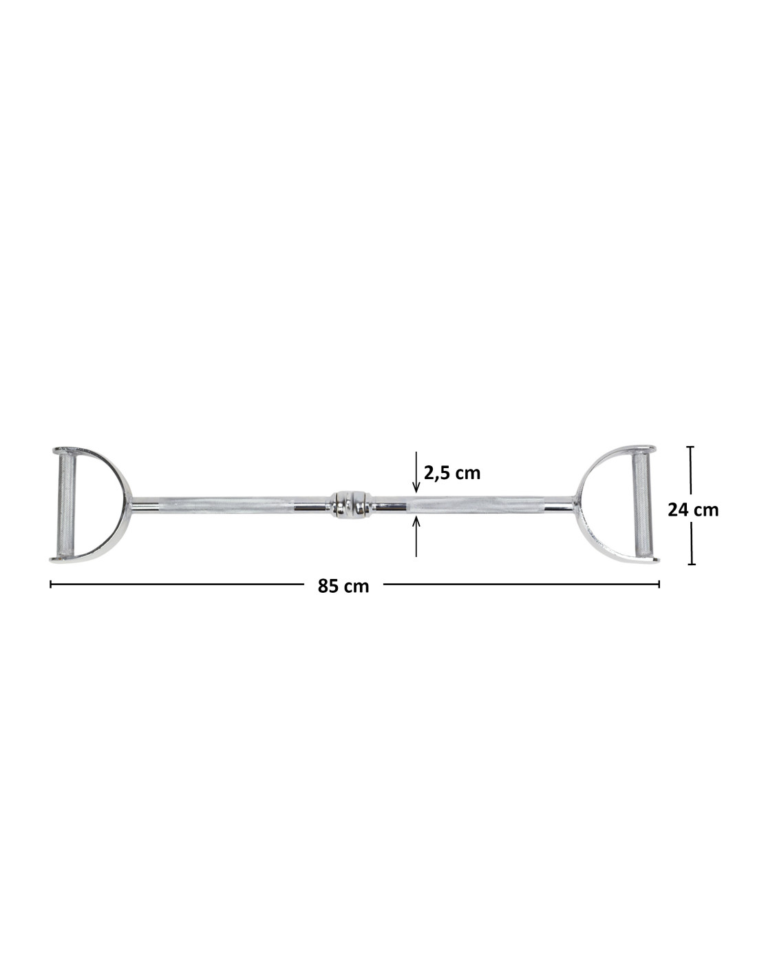 Дължината му позволява различни опции за захващане, от много тесен до много широк захват. Това ви позволява да изградите мускулите си с лентата за изтегляне на шир при различни дължини на мускулните приставки. Крайните дръжки, които са позиционирани в неутрален захват, гарантират това. Изработена е от стомана, което ви позволява да изпълнявате упражненията дори при големи натоварвания. Благодарение на назъбените дръжки, този лост за падане няма да се изплъзне от ръцете ви. Това изисква здрав захват, който същевременно изгражда мускулите на предмишницата.