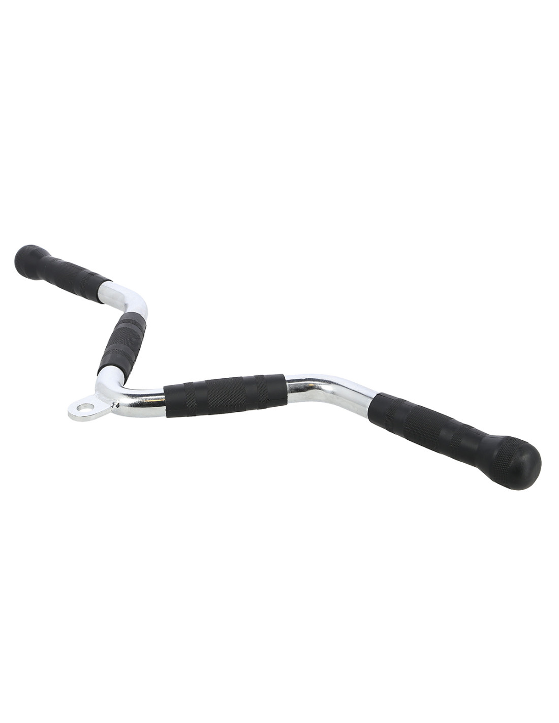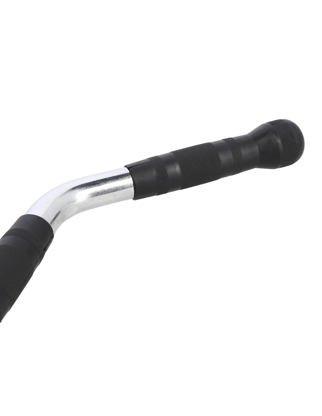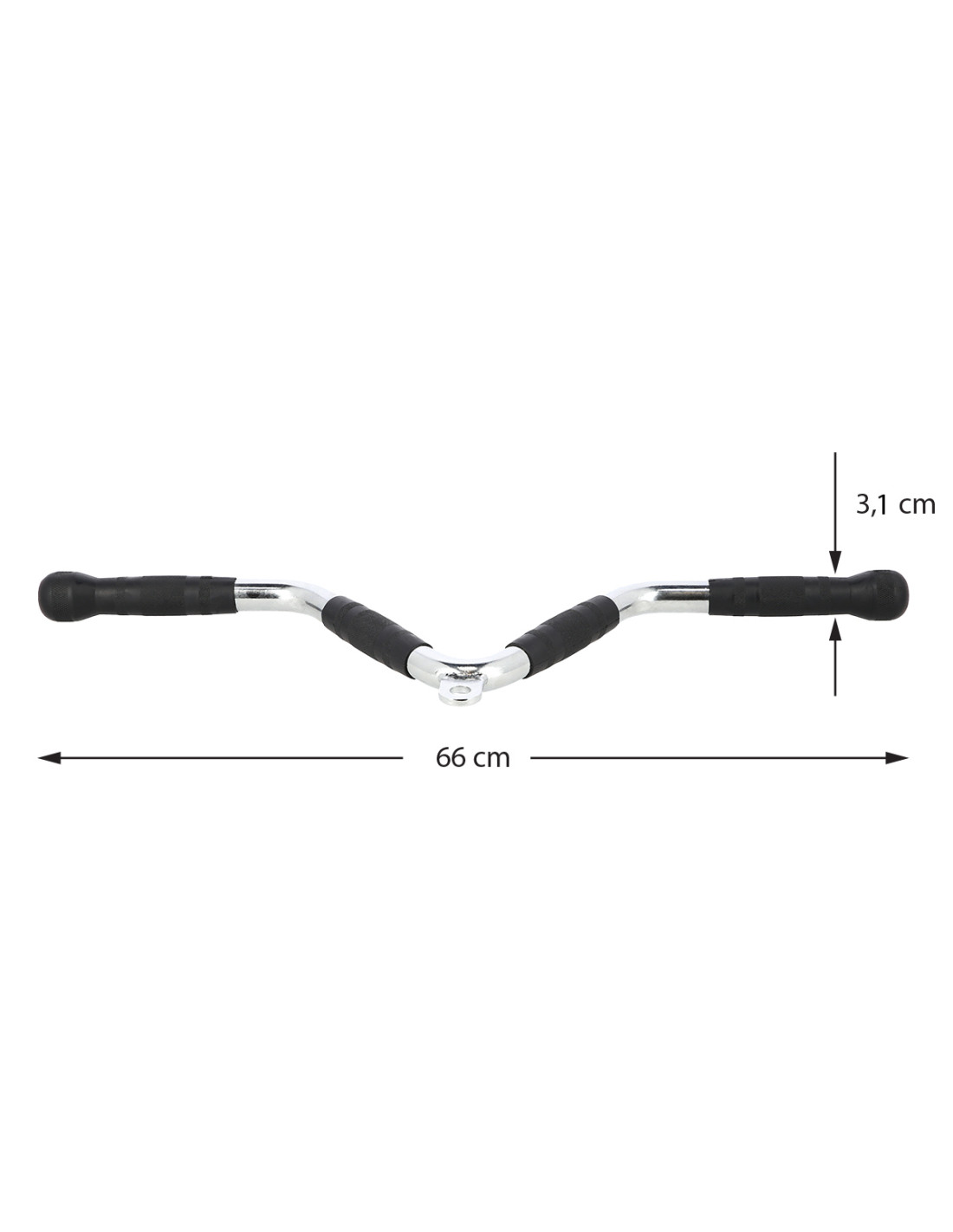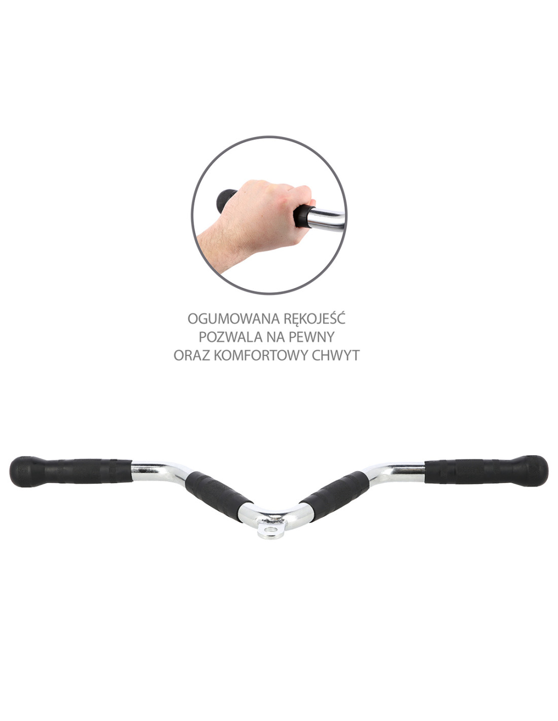 Дръжките на щангата са разположени вертикално и диагонално. Това ви позволява да промените хватката си. В същото време можете да развиете напълно тренираните мускули по време на вашата тренировка, защото принуждавате различни мускулни приставки да работят. Гумените дръжки осигуряват сигурен и удобен захват. Това предотвратява изплъзване на гребната дръжка. Изработена е от стомана, което ви позволява да изпълнявате упражненията дори с големи тежести.