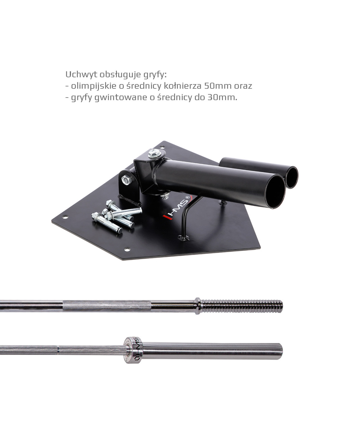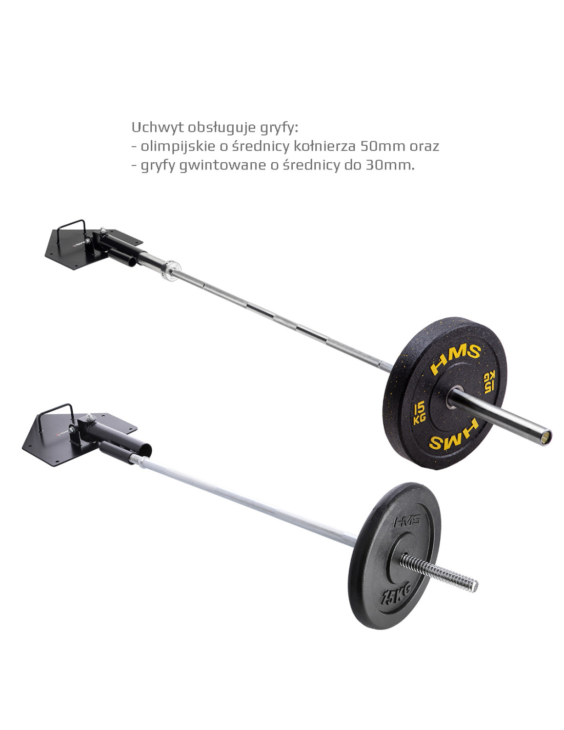 Държачът е подходящ за олимпийска щанга с диаметър на втулката 50 мм или за щанга с диаметър 28 мм.