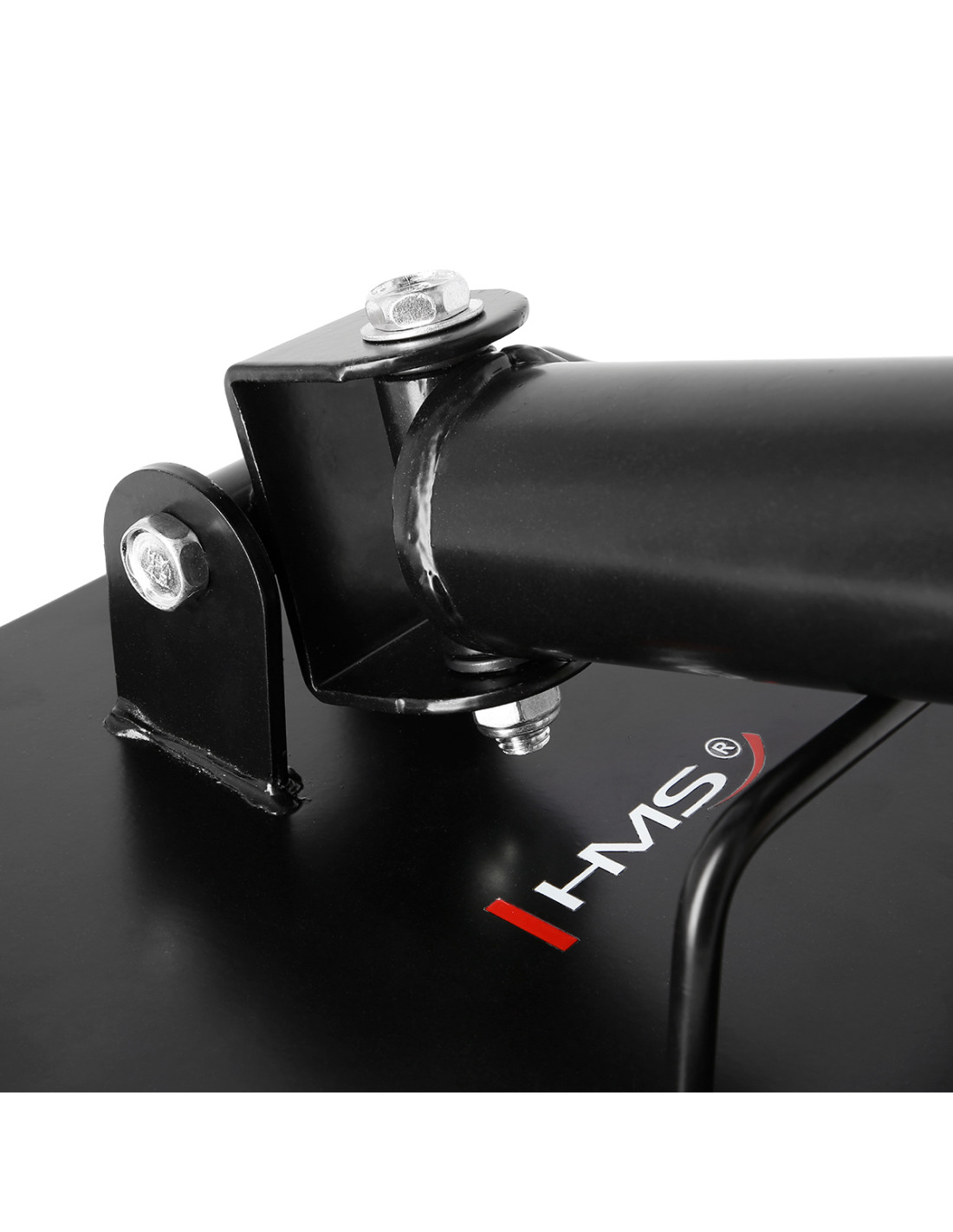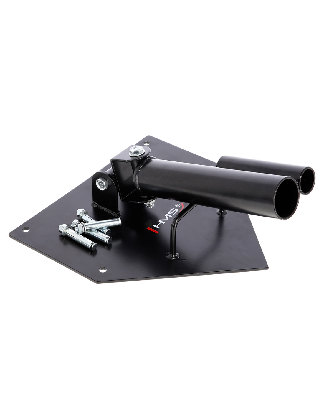 Стойката за щанга UCG01 HMS е закрепена към пода с четири винта, което я прави изключително стабилна. Формата му позволява да се монтира в ъгъл на стая.