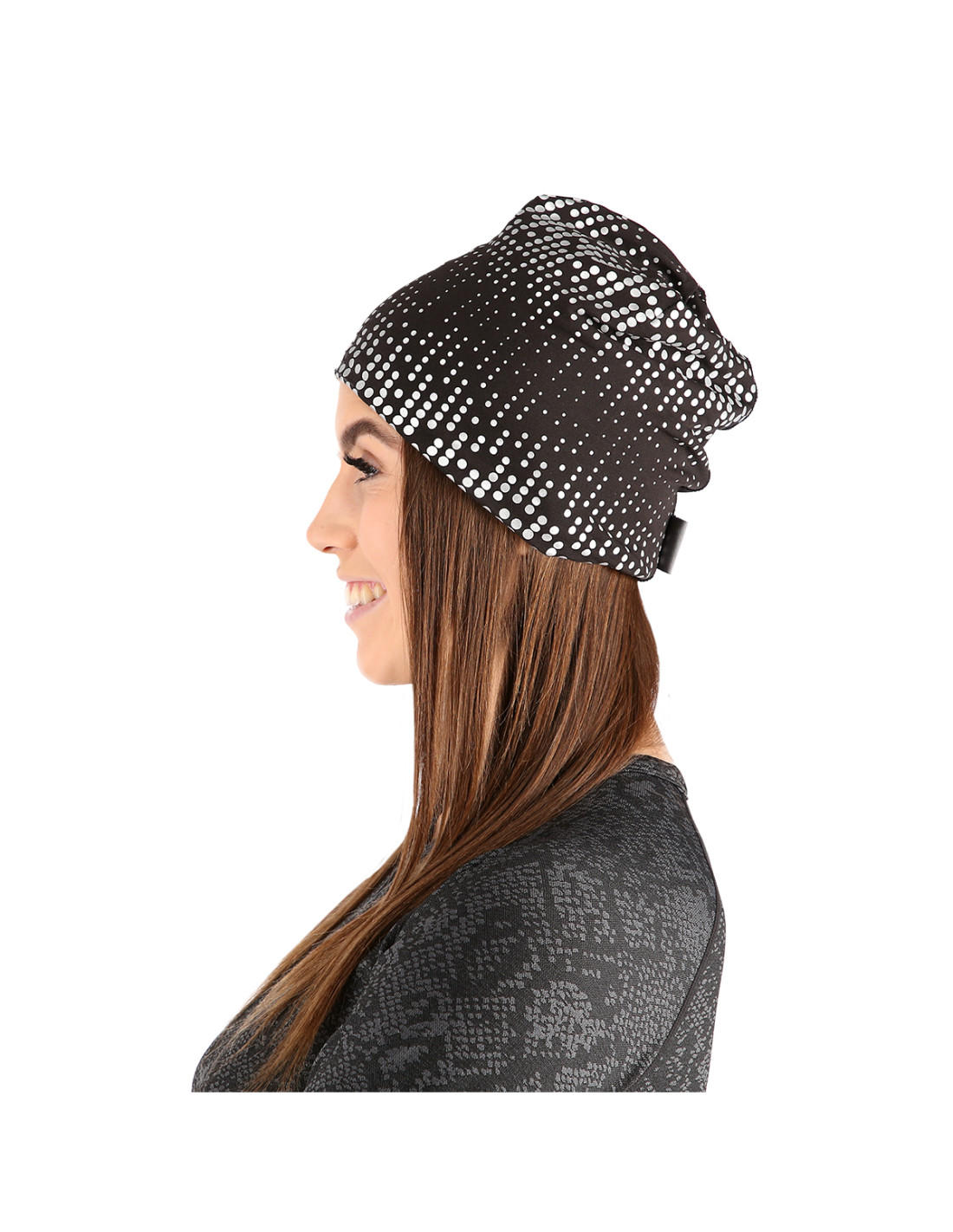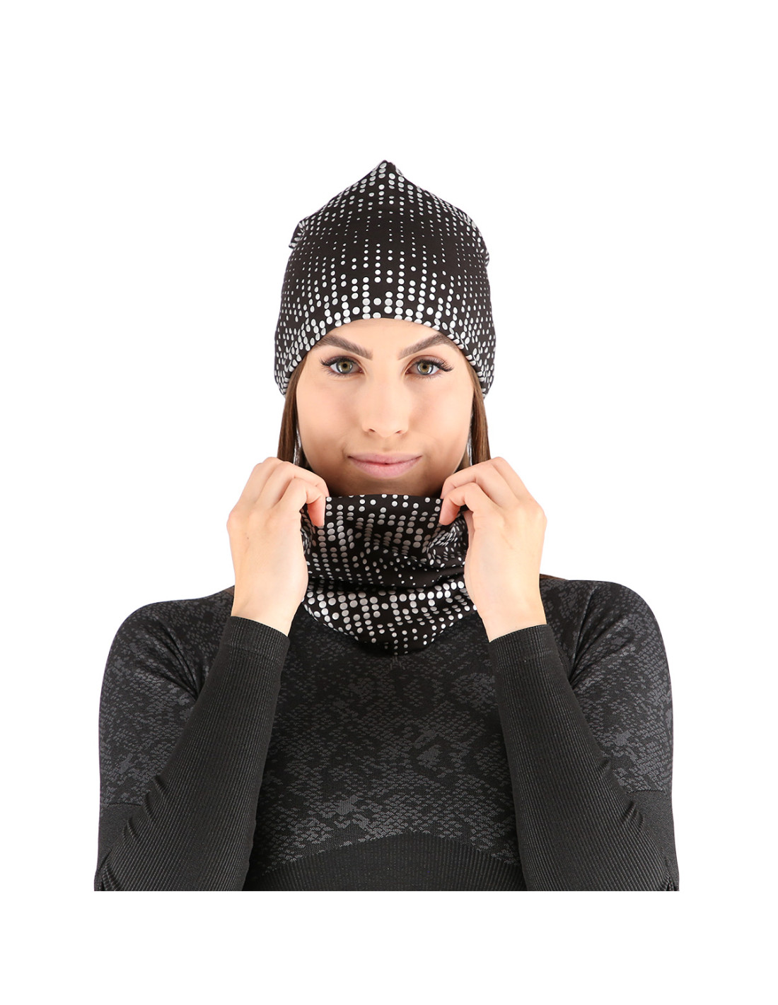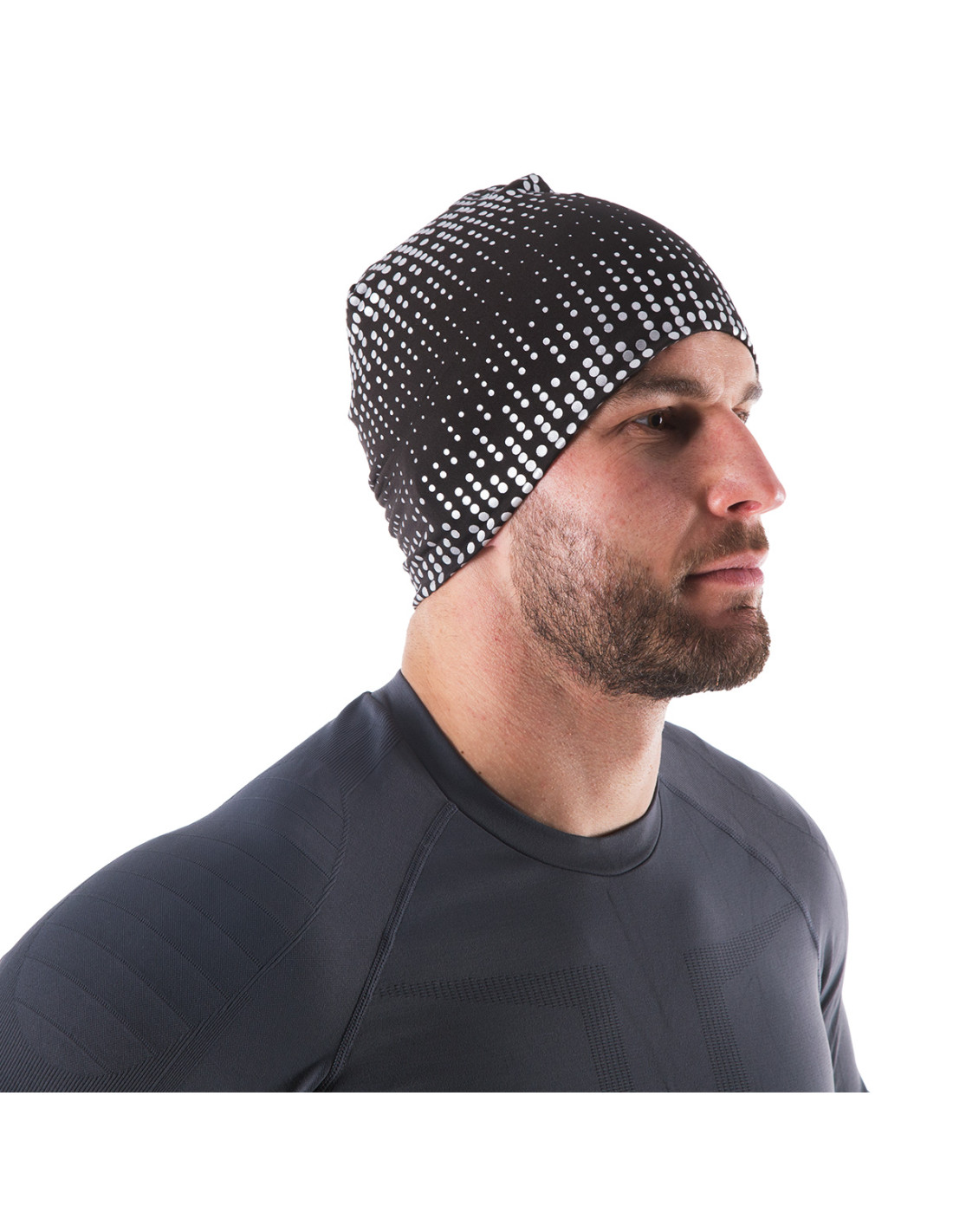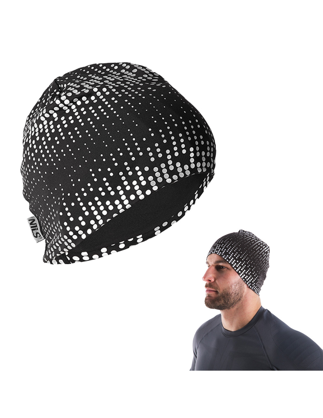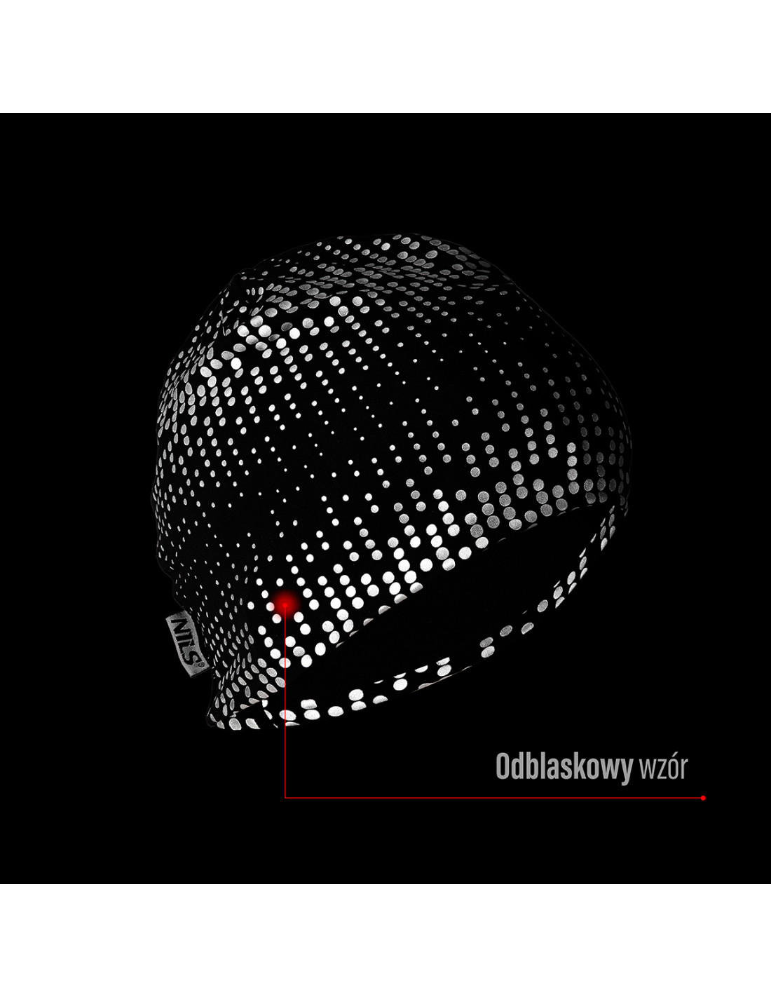 Шапката е изработена от висококачествен материал, който отвежда излишната влага и топлина. Освен това осигурява суха кожа и оптимална телесна температура, дори по време на тренировки на открито или дълги планински преходи. Допълнително предимство е фактът, че шапката NILS е покрита със светлоотразителни елементи по цялата си повърхност, което ни прави видими от разстояние в тъмното, което значително подобрява нашата безопасност.
