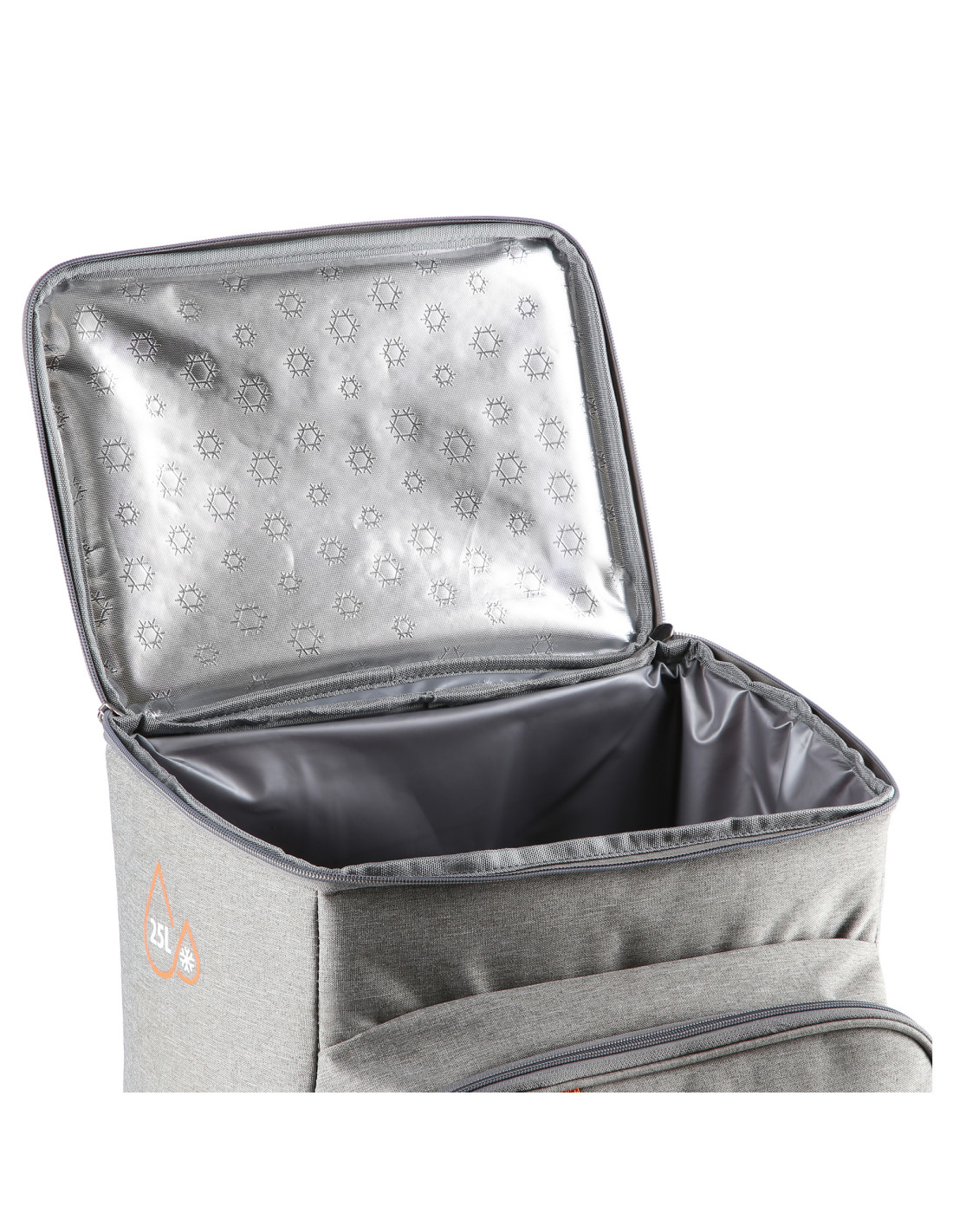 Изработено от издръжлив плат 300D Oxford и подплатено с изолиращ PEVA, основното отделение предлага отлична термична защита. Чантата предлага и допълнително пространство благодарение на два странични мрежести джоба и два предни джоба с цип, идеални за съхранение на предмети, които не изискват топлоизолация. С обем от 25 литра и лек дизайн, той е не само просторен, но и лесен за пренасяне, което го прави надежден спътник във всяко приключение на открито. Освен това NC3140 разполага с регулируеми презрамки, които позволяват да се носи като раница. Това решение е идеално за хора, които искат да запазят ръцете си свободни, независимо дали са на походи или карат велосипед.
