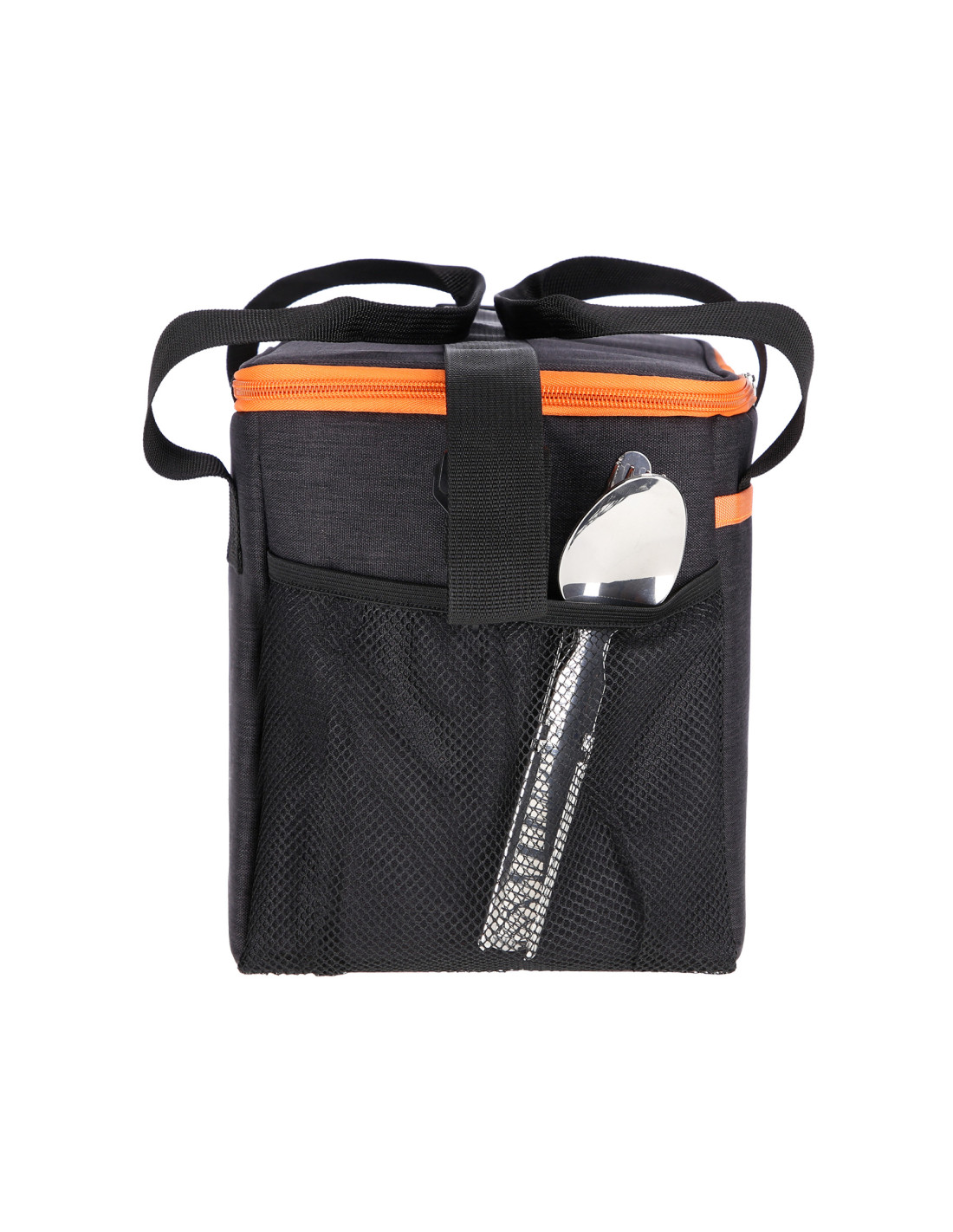 Изработено от издръжлив плат 600D Oxford и подплатено с изолиращ PEVA, основното отделение предлага отлична термична защита. Чантата предлага и допълнително пространство с два странични мрежести джоба и преден джоб с цип, идеални за предмети, които не изискват топлоизолация. С обем от 10 литра и лек дизайн, той е просторен и лесен за пренасяне, което го прави надежден спътник във всяко приключение на открито. Освен това NC3120 е оборудван с удобна презрамка и здрава дръжка, което ви дава свободата да изберете как искате да го носите.