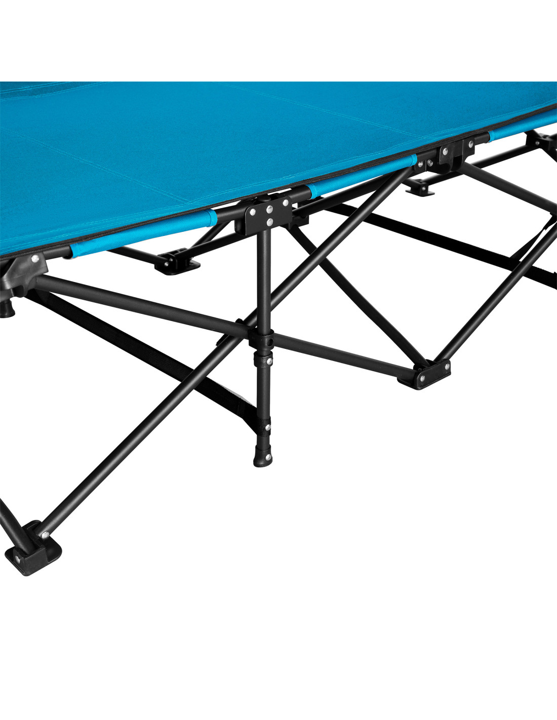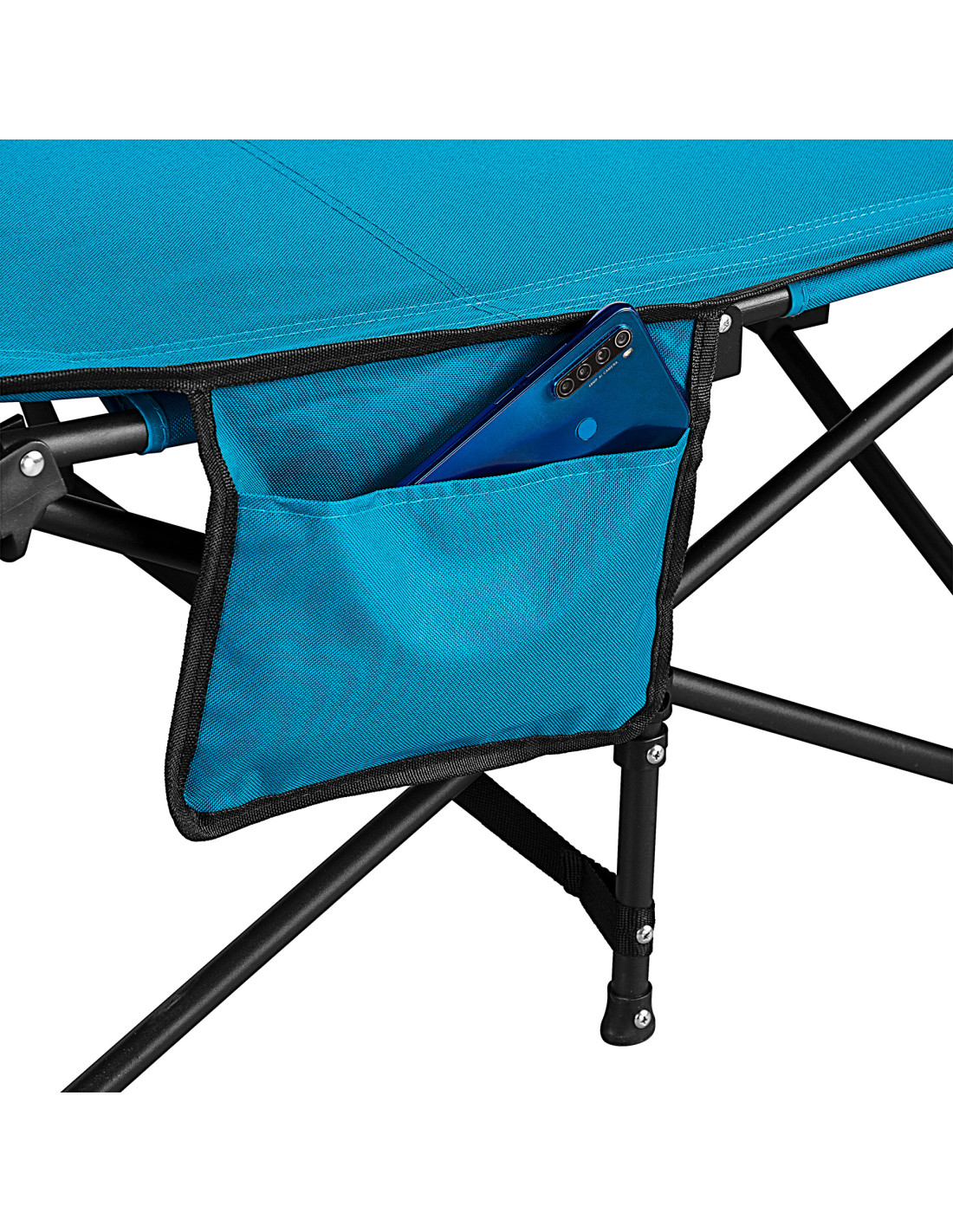 Здравата стоманена рамка осигурява висока товароносимост до 120 кг и дълъг експлоатационен живот. Дишащата материя 600D Oxford осигурява допълнителен комфорт, особено при топло време. Здравата конструкция осигурява безопасна и удобна повърхност за лягане както на твърди, така и на меки подове.
