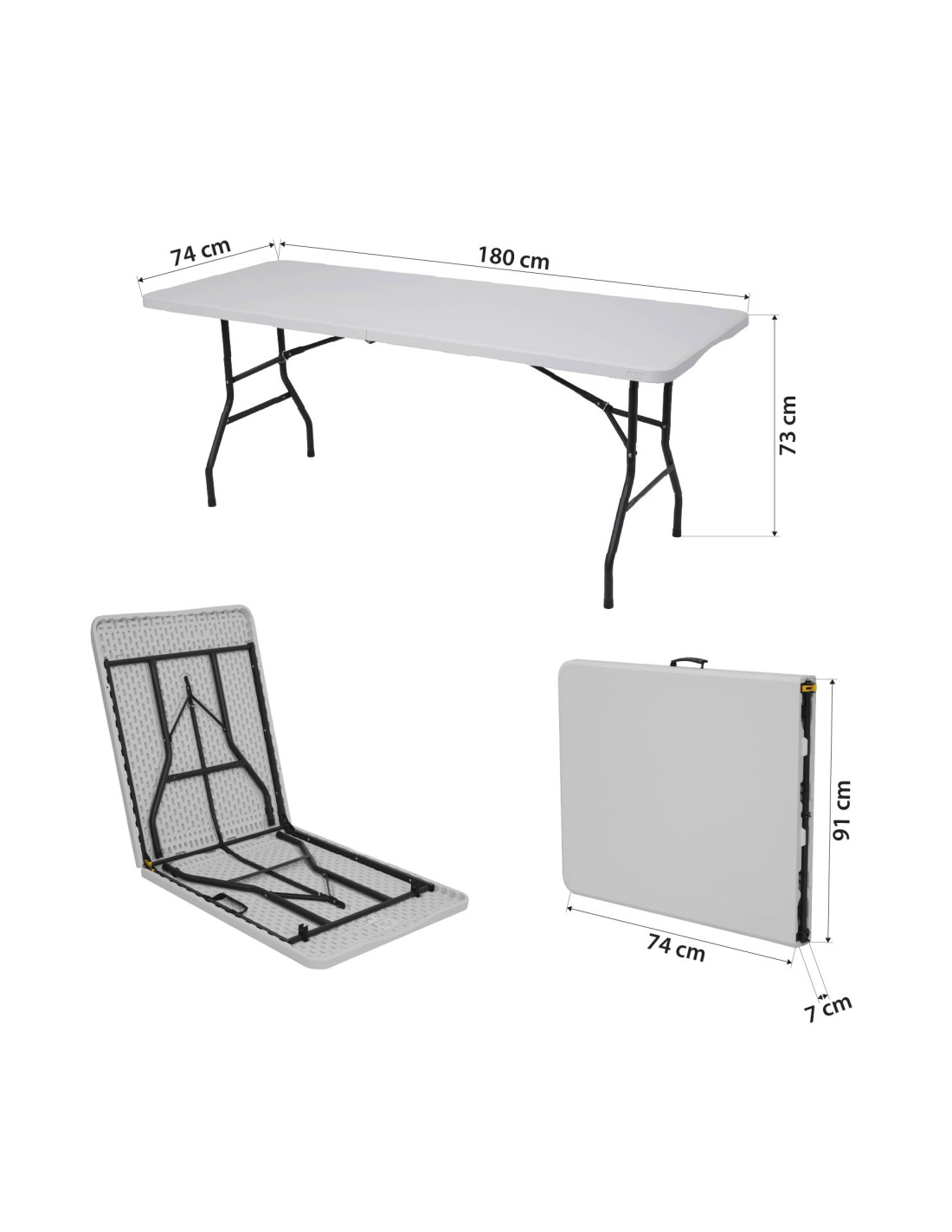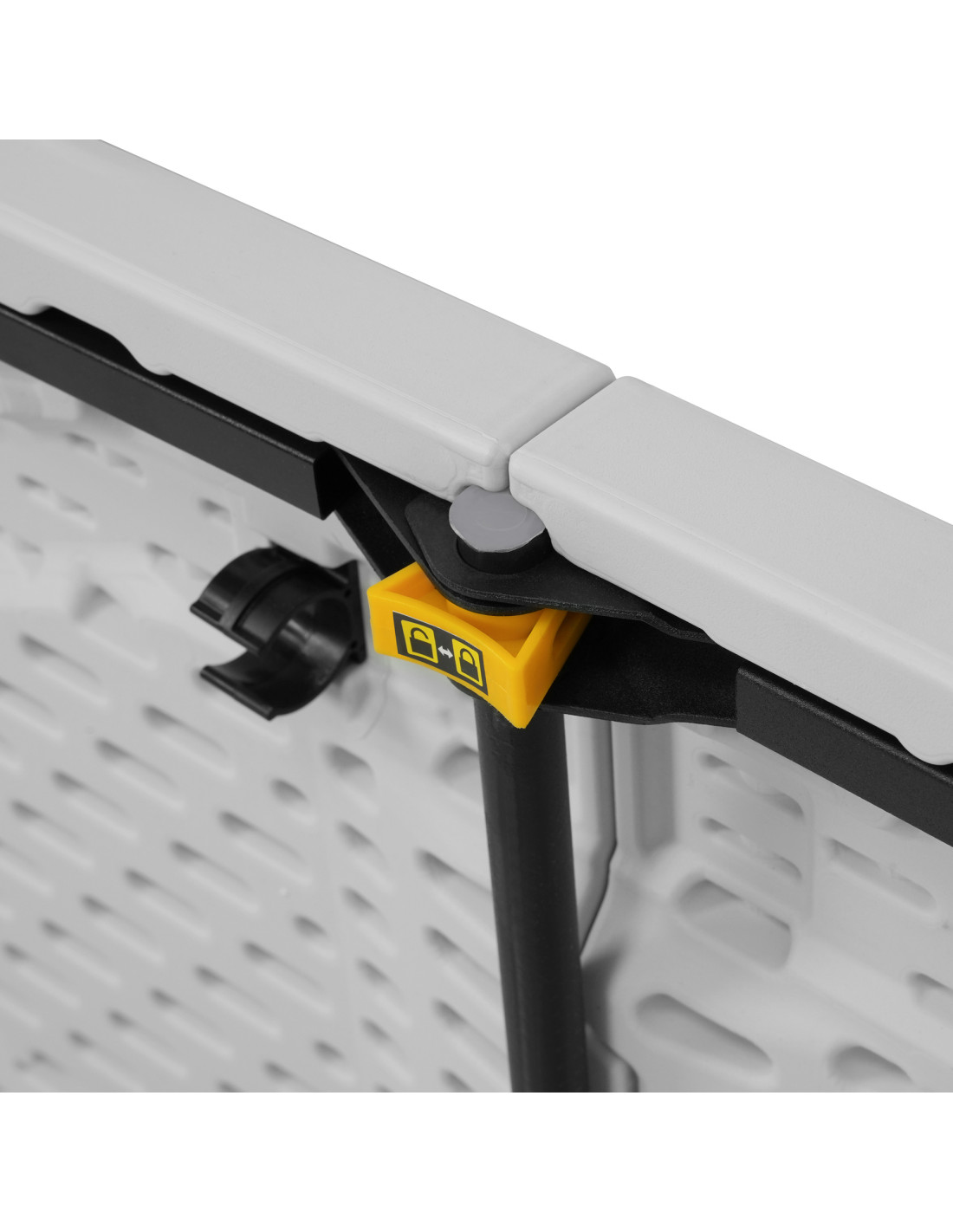 Einer der Hauptvorteile des NC1618 ist seine robuste und durchdachte Konstruktion. Die Tischplatte besteht aus langlebigem PVC mit einer glatten Oberfläche, die nicht nur gut aussieht, sondern auch schmutzabweisend, leicht zu reinigen und wetterfest ist. Der verstärkte Stahlrahmen sorgt für Stabilität auch bei hoher Belastung. Die maximale Tragfähigkeit von bis zu 150 kg ermöglicht eine sichere Nutzung des Tisches beim Servieren von Speisen, Aufbewahren von Geschirr oder Aufstellen von Geräten bei Veranstaltungen.