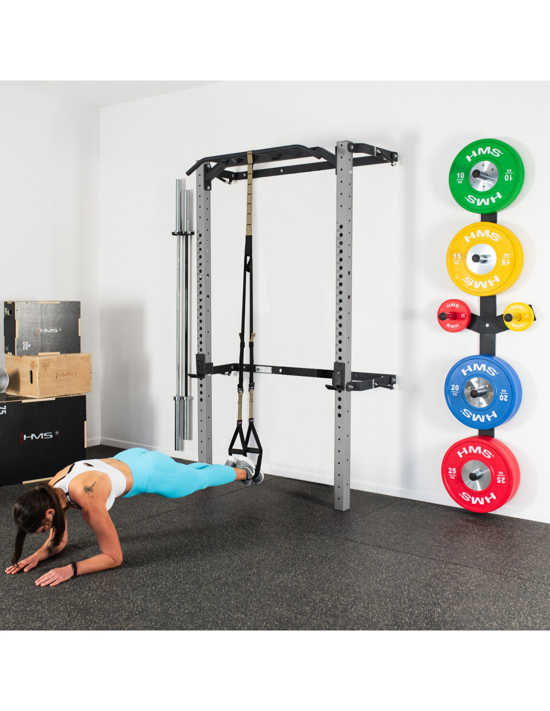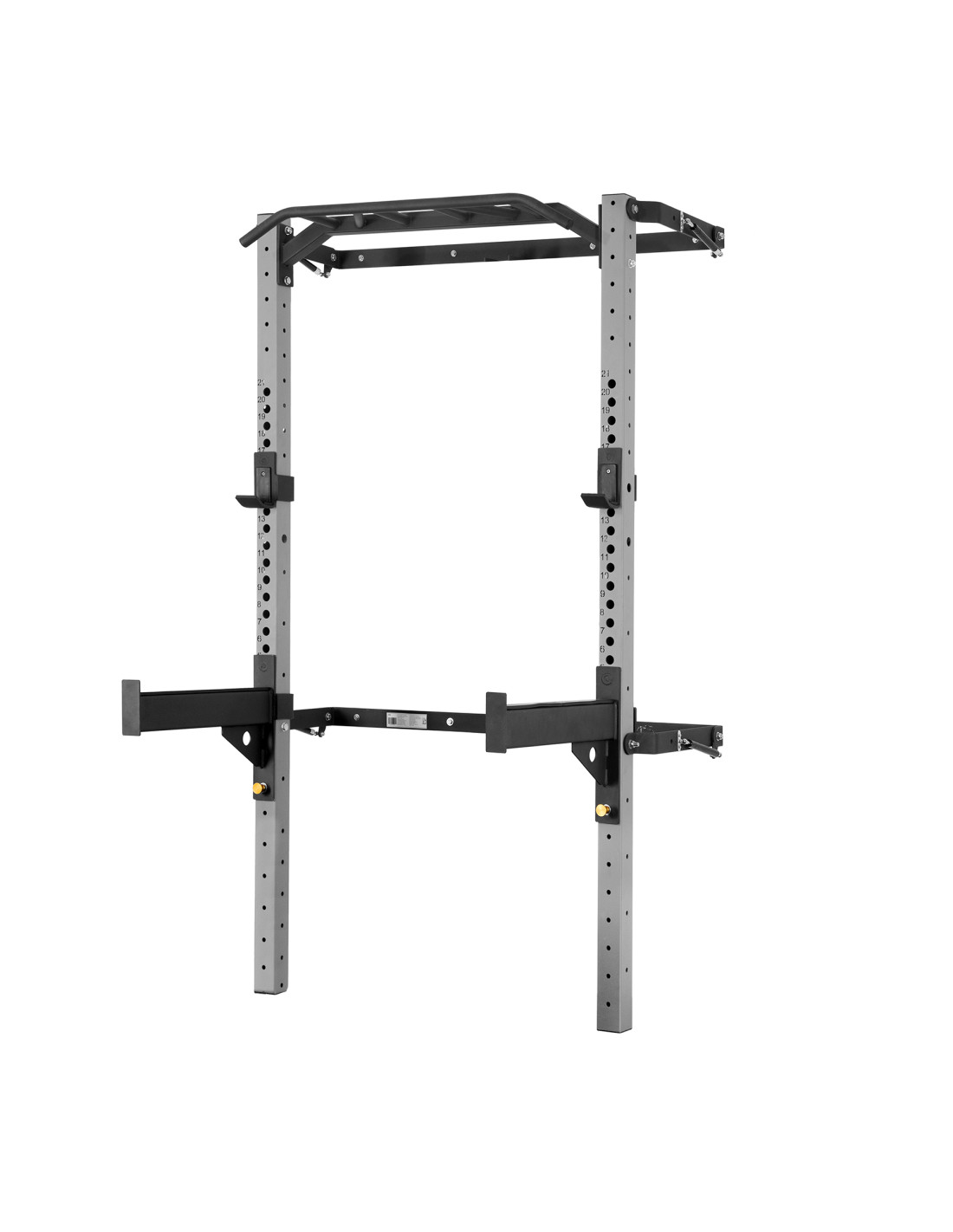 Регулируемата стена стойка KLT23 от HMS е проектирана да отговаря на актуалните пазарни тенденции и да задоволи очакванията дори на най-взискателните клиенти. Тази версия се предлага с лост за набирания, куки за щанга и предпазни опори. KLT23 ще ви отвори нови възможности за тренировки.