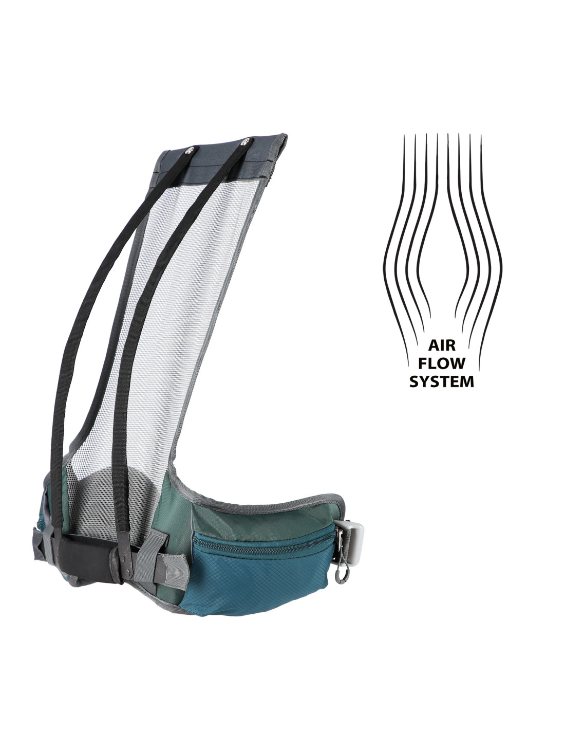 Дишащ вентилационен панел: Уникална вентилационна система отделя основното отделение от задния панел, осигурявайки циркулация на въздуха и комфорт дори в горещо време. Освен това, цялото тегло на раницата се поддържа от контурирана рамка, която облекчава натиска върху гръбначния стълб и увеличава комфорта при дълги планински преходи. Този панел е лесно сваляем, което е полезна функция за почистване на раницата.