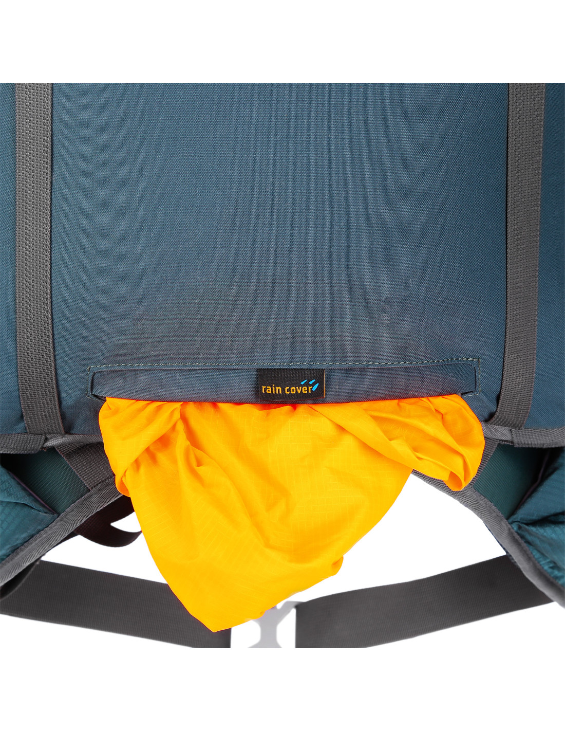 Готова за всякакви метеорологични условия: Нашата раница е изработена от най-съвременни материали, които ефективно отблъскват водата, предпазвайки ценностите ви от лек дъжд и пръски. За особено променливо време, допълнителен дъждобран осигурява пълна защита срещу силни проливни валежи. Леснодостъпен и бърз за поставяне, калъфът действа като ваш щит срещу неочакван дъжд, гарантирайки, че можете да продължите приключенията си необезпокоявани, независимо от условията.