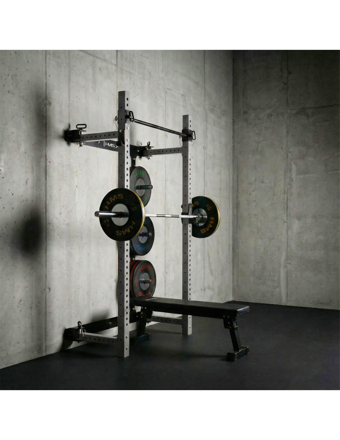 Тренировъчната клетка KLT34 от HMS Fitness е проектирана за домашни фитнес зали, където спестяването на място и функционалността са от решаващо значение. Благодарение на разтегателния си дизайн, не са необходими високи тавани, което я прави подходяща за монтаж в апартаменти, мазета и гаражи. Здравата конструкция, високата товароносимост и сгъваемата пейка създават пълноценна станция за силови тренировки.