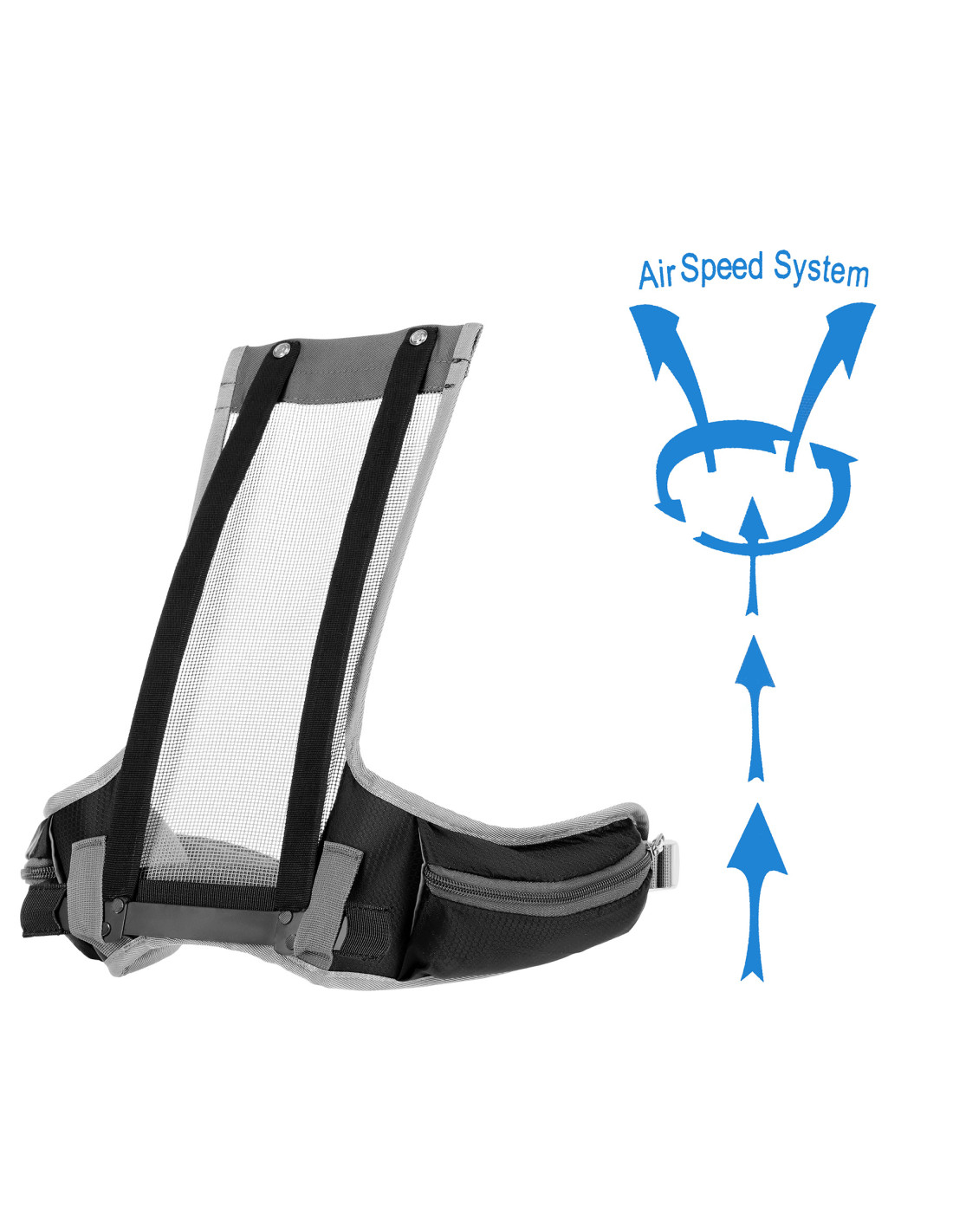 Катарамата на гръдния колан е снабдена с вградена свирка за допълнителна безопасност в критични ситуации. Раницата предлага и допълнителен панел с приставки за различни аксесоари, два странични мрежести джоба и джобове с цип на колана за съхранение на телефон или други малки предмети.