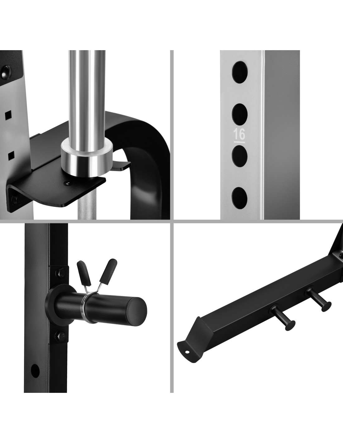 Тази универсална полустойка за домашен фитнес е перфектната основа за всяка силова тренировка.